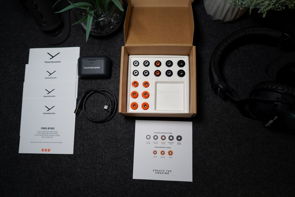 Nicht zuletzt dank der Vielzahl beiliegender Ohrstöpsel versprechen die beyerdynamic Free Byrd einen hervorragenden Tragekomfort und bestmöglichen Sitz. Dementsprechend geht die Ersteinrichtung zunächst einmal mit dem Finden der richtigen Einsätze einher.