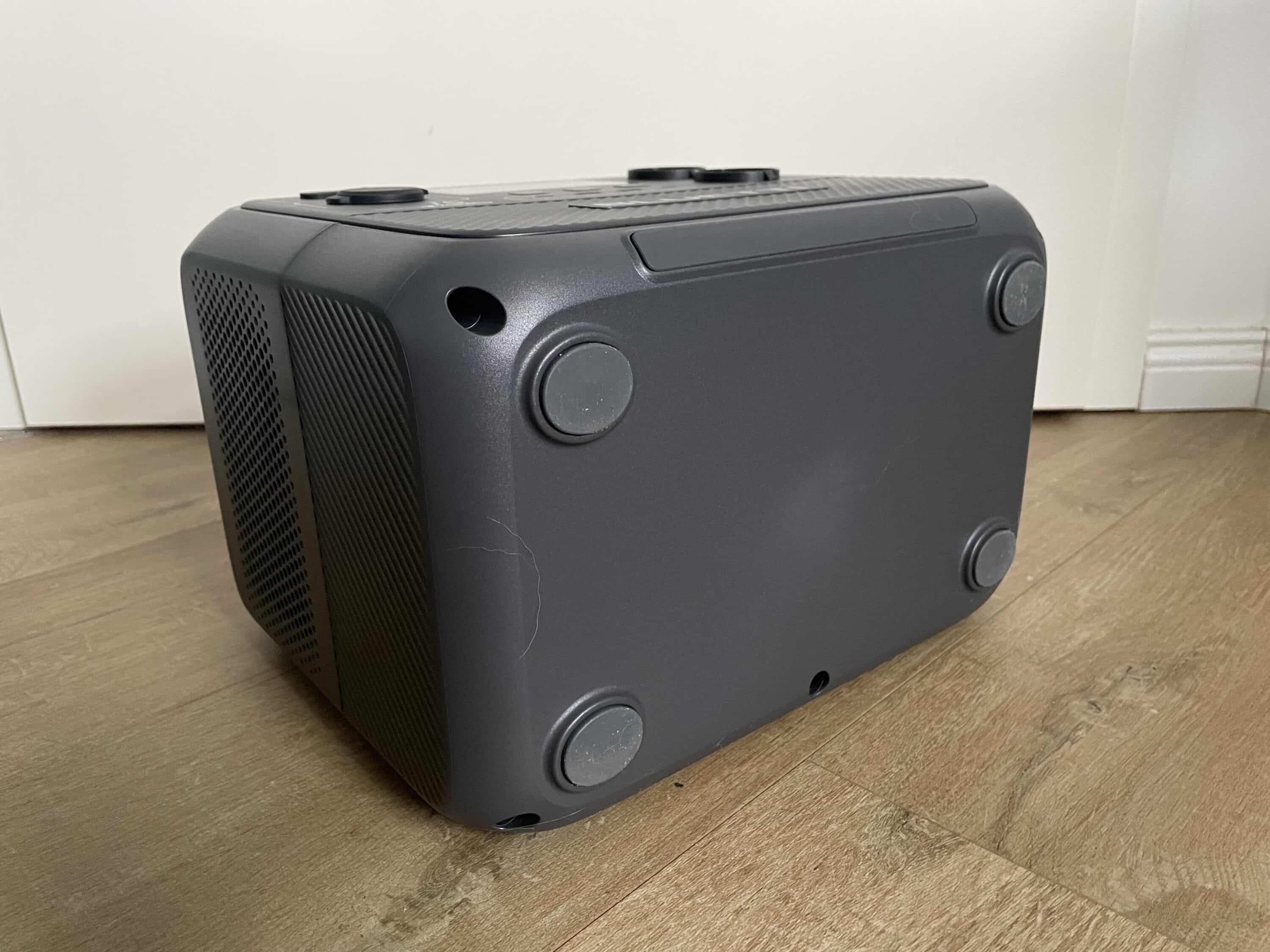 Beim Gehäuse setzt BLUETTI auf hochwertigen Kunststoff, der einen erfreulich robusten Eindruck macht. Ein Handgriff auf der Oberseite ermöglicht einen komfortablen Transport des 10,2 kg schweren Speichers – zumindest über nicht allzu weite Strecken. Wer einen leichteren Speicher sucht, BLUETTI aber dennoch treu bleiben möchte, sollte sich einmal die BLUETTI EB3A (Test) ansehen. Allerdings kommt diese auch mit weniger Kapazität und Leistung daher.