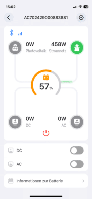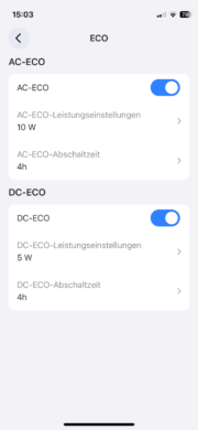 Weiterhin kann man per App Firmwareupdates starten, um die Powerstation immer auf dem neuesten Stand zu halten. Das sind aus meiner Sicht die wichtigsten Features der App. Abseits davon lassen sich noch einige Kleinigkeiten regulieren. So kann man beispielsweise festlegen, nach wieviel Zeit der Inaktivität sich der Bildschirm automatisch abschalten soll. Etwas schade finde ich, dass die AC70 lediglich ein Bluetooth-Modul besitzt.