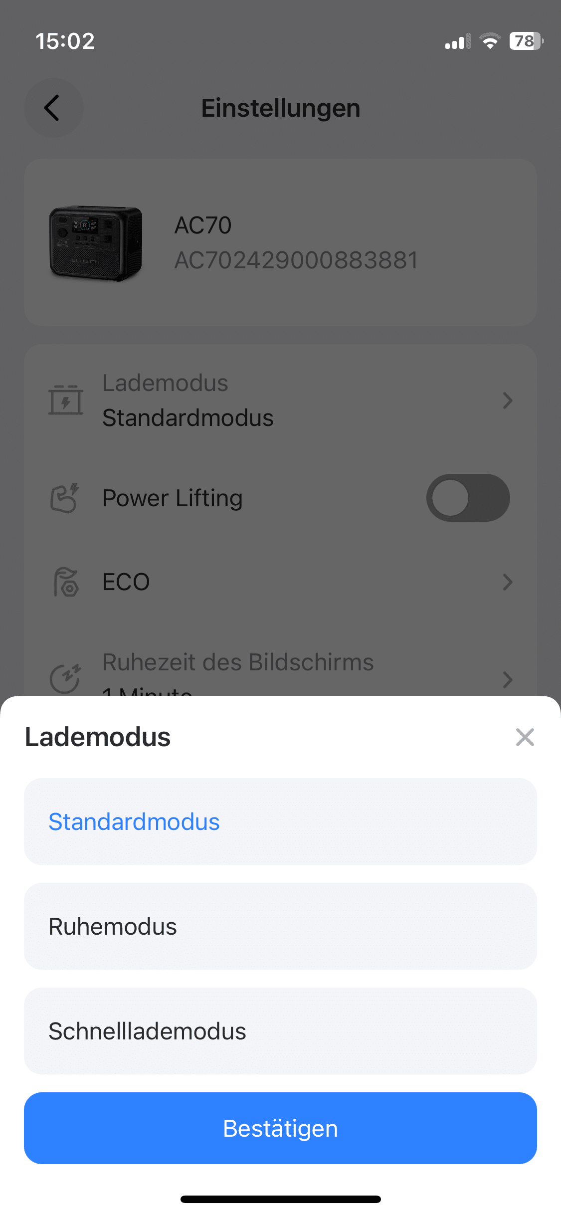 BLUETTI AC70 Test: Feintuning über die App