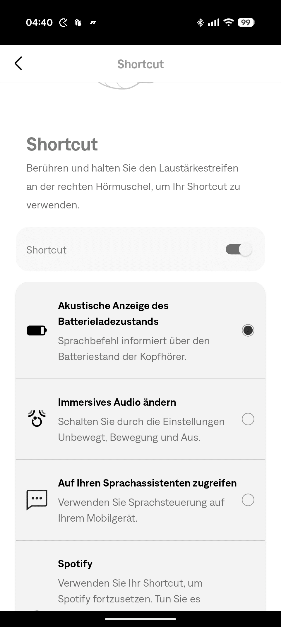 Ein wichtiger Punkt ist, dass der Kopfhörer auch im kabelgebundenen Betrieb eingeschaltet sein muss, was den Akku beansprucht. Eine reine passive Nutzung ohne Stromversorgung ist nicht möglich. Die Akkuanzeige erfolgt über eine LED an der Ohrmuschel und synchronisiert sich mit der Bose Music App, die den Akkustand präzise anzeigt.