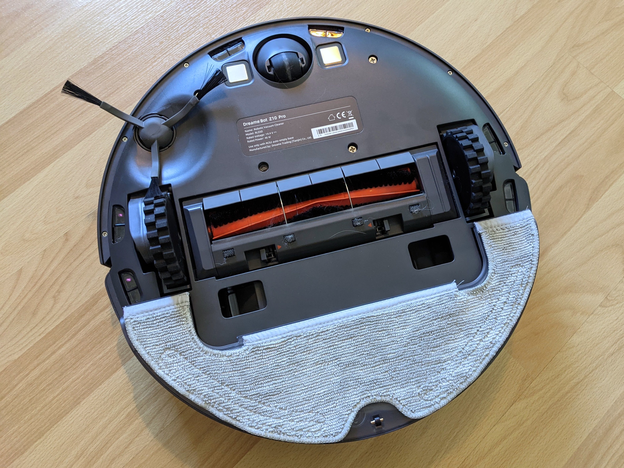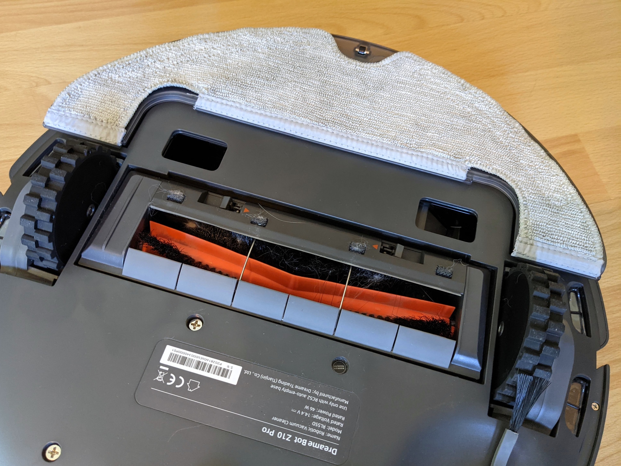 Neben der hohen Saugleistung von bis zu 4000 Pa verfügt der Saugroboter über eine rotierende Bürste mit Gummilippen auf der Unterseite. Diese sorgt dafür, dass mehr Schmutz erfasst und auch aufgenommen wird. Wer lange Haare hat oder Haustiere besitzt, der sollte diese regelmäßig reinigen, da die Saugleistung deutlich nachlassen kann, wenn diese stärker verschmutzt ist. Für die Wischfunktion besitzt der Dreame Z10 Pro einen flachen Tank und ein Wischtuch. Der Tank wird mit Wasser gefüllt und das Tuch angefeuchtet. Anschließend wird beides zusammen hinten am Roboter angebracht. Nach dem Wischvorgang sollte der Tank wieder entfernt und das Tuch gereinigt werden.