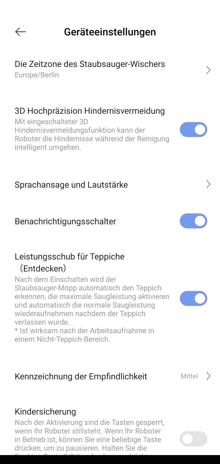 Den Start, die Beendigung der Reinigung, den Abschluss der Positionierung, Einsatz des Wassertanks und anderes meldet euch der Saugroboter per Sprache. Sprache und Lautstärke sind dabei anpassbar. Nach Ende der Reinigung erhält man zudem eine Push-Nachricht mit Informationen zur Reinigung aufs Smartphone.