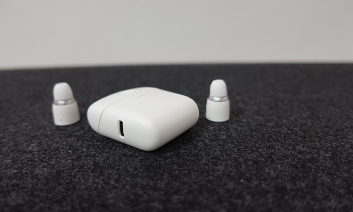 Interessant ist, dass Cambridge Audio beim Ladeetui vollständig auf Knöpfe verzichtet. Einen Pairing-Button gibt es schlicht und ergreifend nicht, die Kopplung wird bei den Ohrhörern selbst gestartet. Lediglich ein USB-C-Anschluss auf der Seite sticht neben der LED-Akkustandsanzeige an der Front hervor.