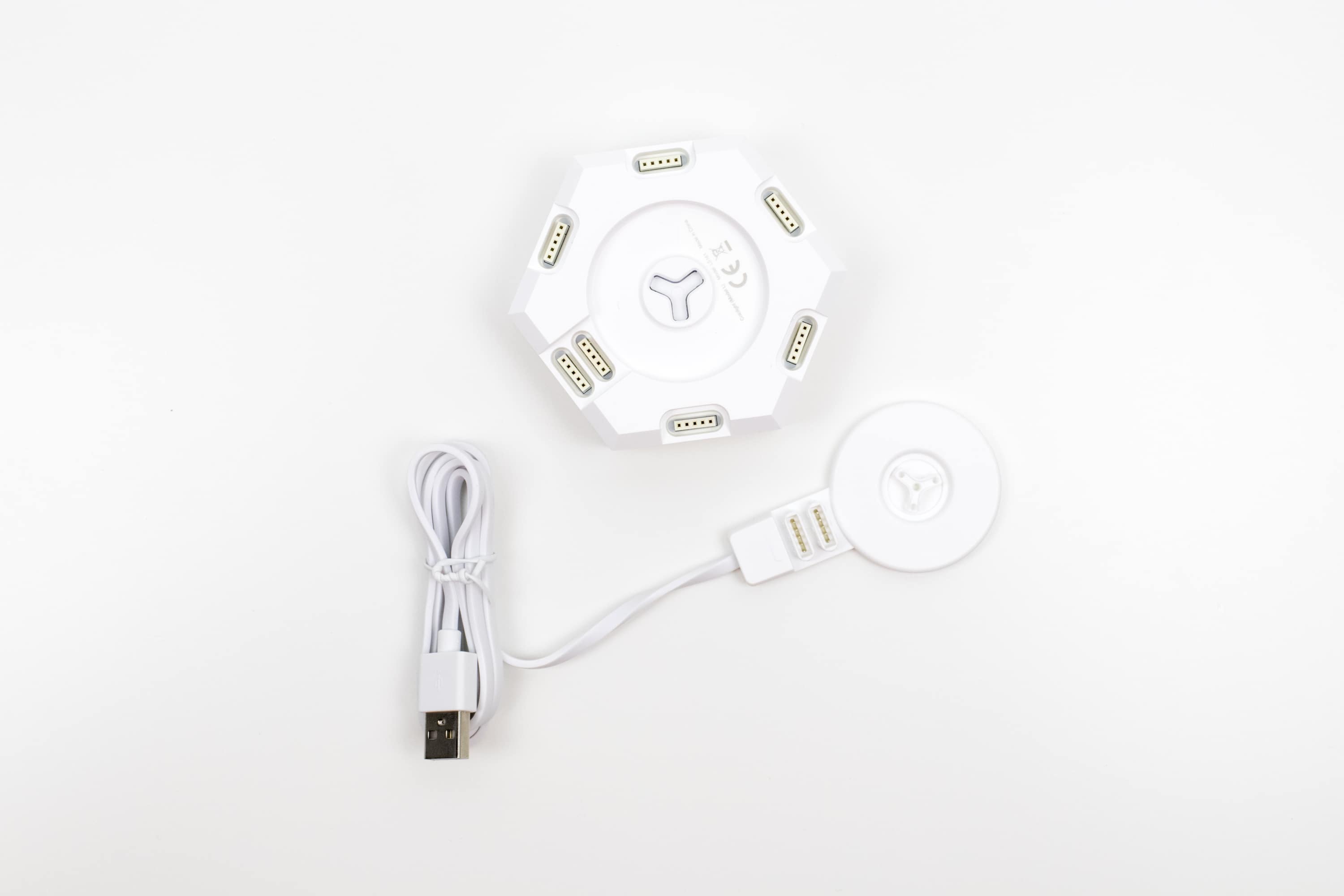 Wir konnten die einzelnen Elemente sehr schnell und ohne Probleme zusammensetzen. Wichtig ist hierbei vor allem, eines der Elemente per USB-Kabel mit einer Steckdose oder einem Gerät, über welches es mit Strom versorgt werden kann, zu verbinden. Die Positionierung im Raum sollte also auch unter dem Aspekt der Stromversorgungsmöglichkeit bedacht werden. Ferner ist darauf hinzuweisen, dass ein entsprechender USB-Adapter benötigt wird, wenn das Kabel mit einer Steckdose verbunden werden soll. Der Hersteller empfiehlt Modelle mit mindestens 2 Ampere, legt aber leider keins in den Lieferumfang. Ein Ladekabel kann laut Hersteller bis zu 30 Leuchtelemente mit Strom versorgen. Da wir nur das Basispaket mit nur drei Zusatzelementen getestet haben, haben wir nicht geprüft, inwiefern dem tatsächlich so ist. Sollen mehr Panels verbunden werden, kann man sie jedoch mit weiteren Stromquellen verbinden.