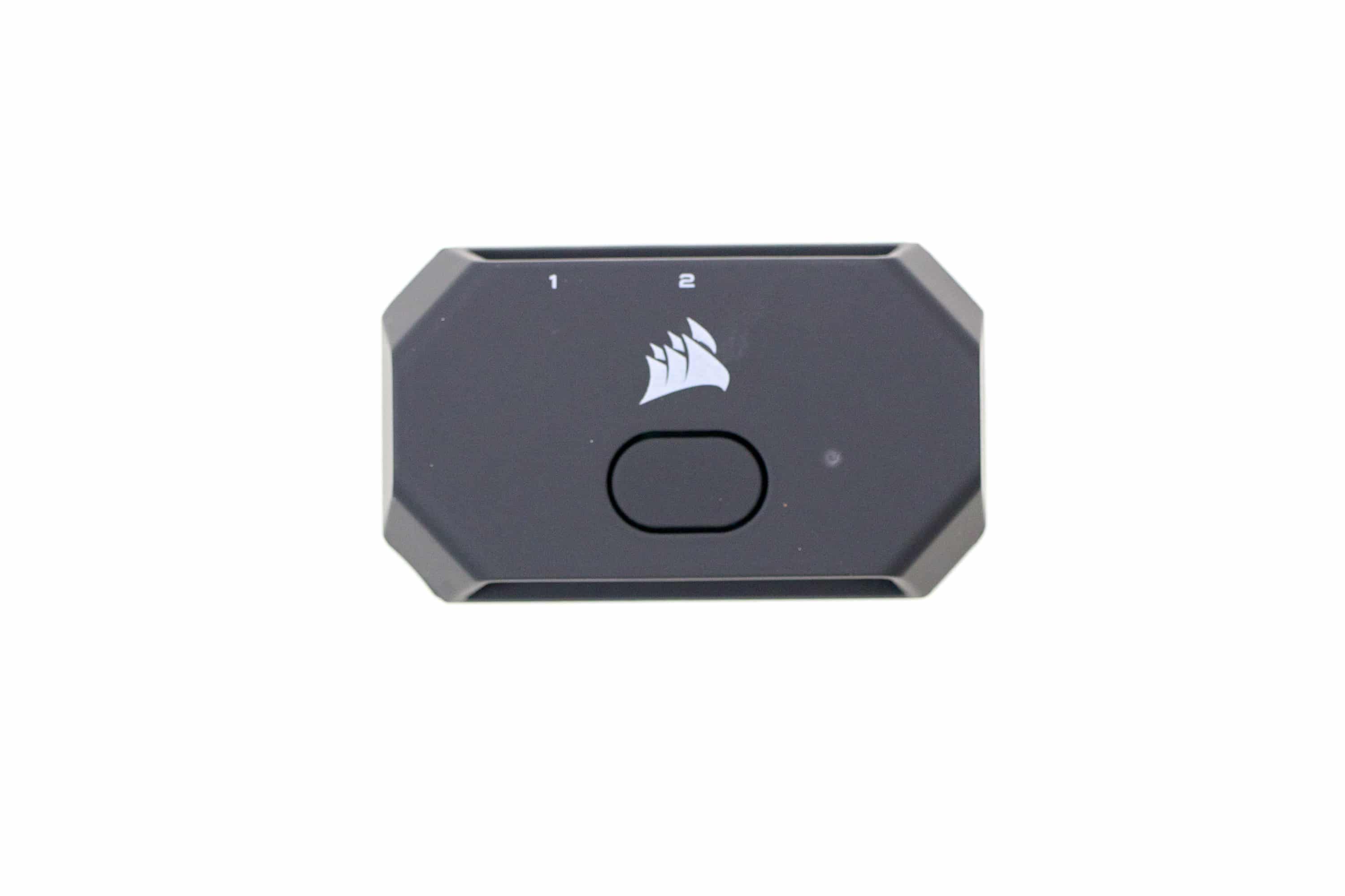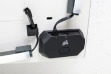 Der beiliegende RGB-Controller verfügt indes über zwei RGB-Anschlüsse, einen Stromeingang und einen Micro-USB-Anschluss. Auf der Oberseite des Controllers findet sich eine Taste, die das Ein- und Ausschalten bei ausgeschaltetem PC erlaubt. Unterseitig sind zwei Metallplättchen angebracht, die benötigt werden, um den Controller am Monitor oder anderswo zu befestigen.