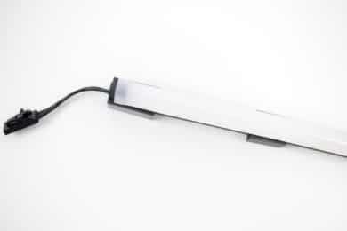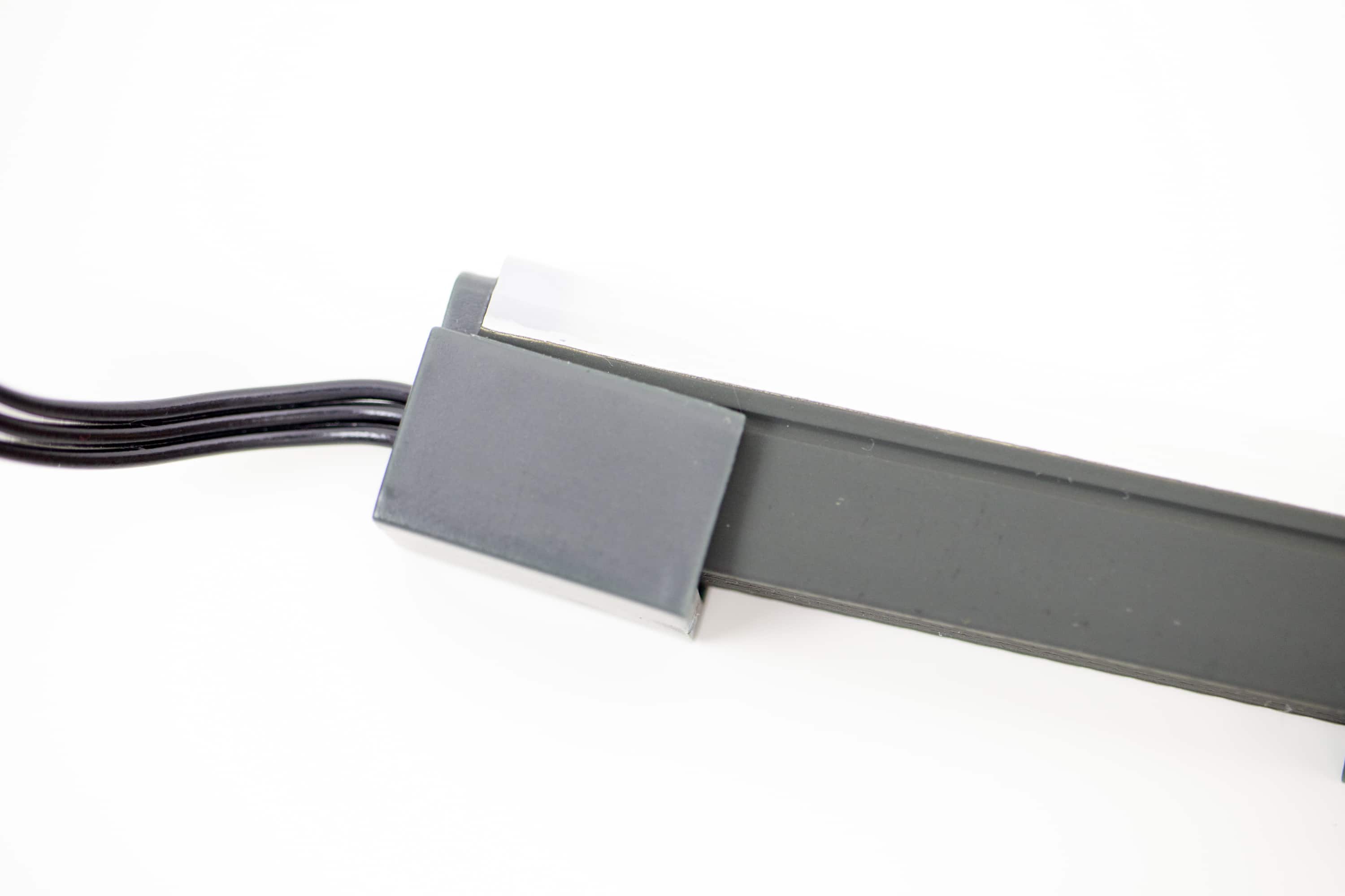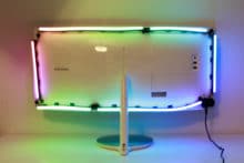 Die LED-Streifen sind relativ groß und verfügen über eine weiße Silikonschicht, die ein wenig eigenartig aussieht, jedoch äußert sinnvoll ist, dient sie doch der Lichtdiffusion. Die langen Streifen verfügen über je vier Magnetblöcke, mit denen sie am Monitor befestigt werden können. Die Magnetblöcke sind beweglich, was dazu führt, dass die Streifen in der Anbringung relativ flexibel sind. Bei Bedarf können einzelne Magnetblöcke auch abgenommen werden. Die kleinen LED-Streifen verfügen über je drei Magnetblöcke.