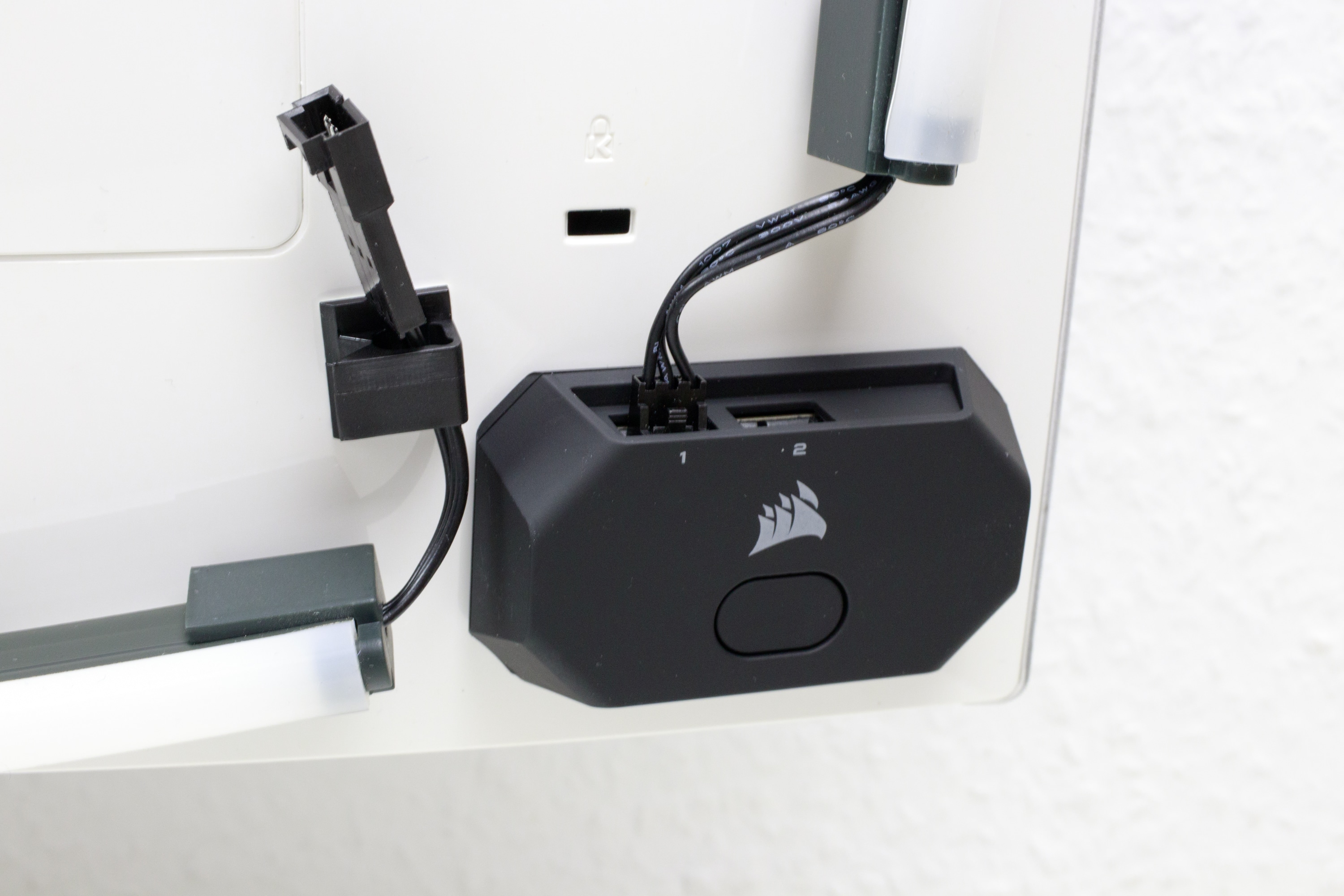 Da wir für unseren Test einen 34-Zoll-Ultrawide-Monitor bestücken, benötigten wir zusätzliche Leuchtstreifen. Hierfür bietet Corsair Erweiterungssets an, die keinen eigenen Controller beinhalten.