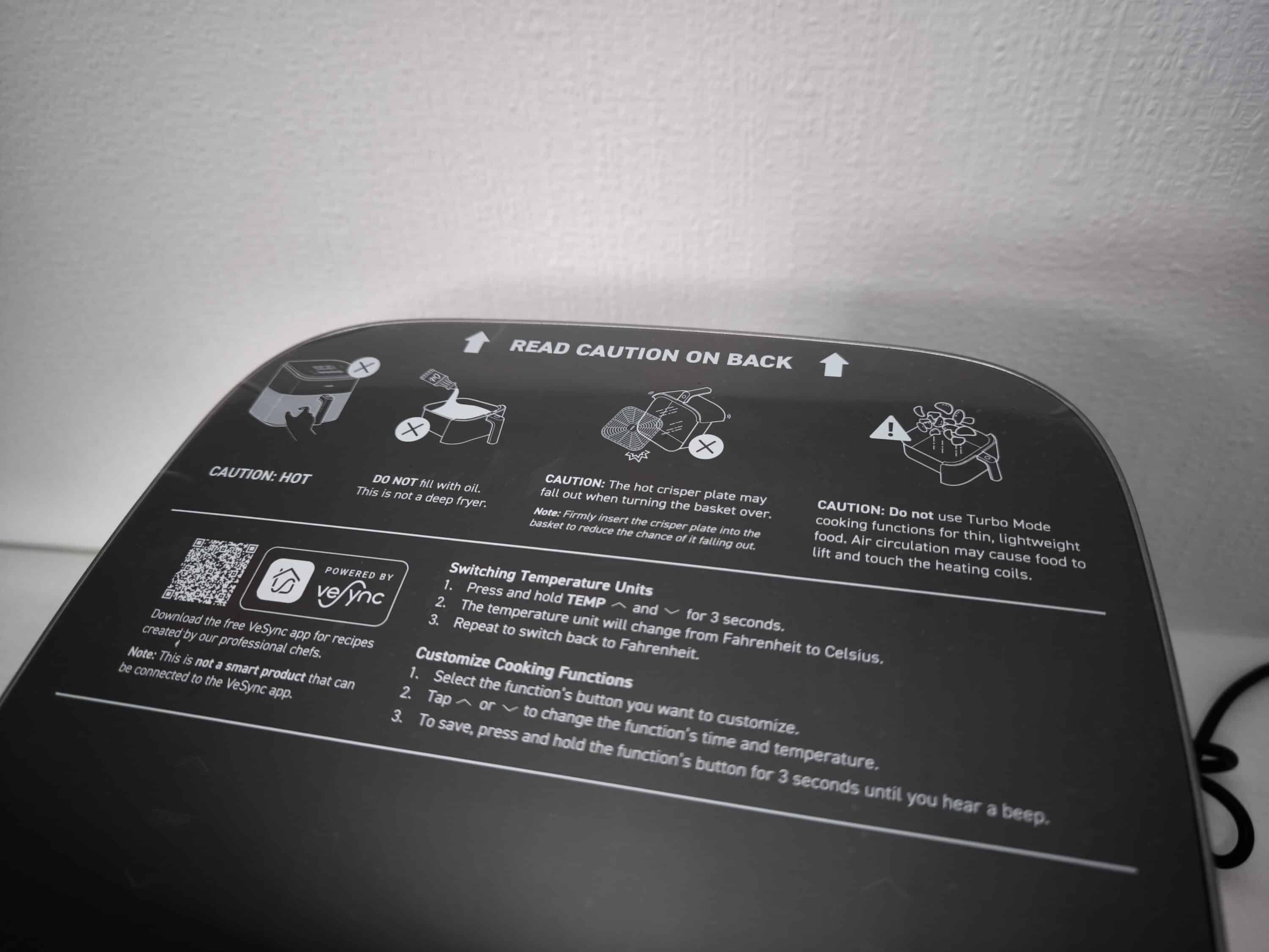 Ein weiterer Pluspunkt stellt das großzügige Programmmenü dar, das sich für eine Vielzahl von Gerichten eignet. Vorbei sind die Zeiten, in denen man in Fritteusen nur Pommes Frites zubereiten konnte. Selbst wer Speisen nur aufwärmen möchte, ist damit genauso gut bedient, wie jemand, der Fleisch anbraten möchte. Selbst Tiefkühlkost wie eine TK-Pizza findet darin Platz, vorausgesetzt, sie wird vorher in Stücke geschnitten. Als netter Begleiter für Rezepte oder als Einkaufszettel für das nächste Gericht eignet sich auch die VeSync-App, obwohl die Heißluftfritteuse selbst nicht smart ist. Alternativ reicht aber auch ein Blick zur Inspiration in das 160-seitige Booklet, das COSORI beilegt.