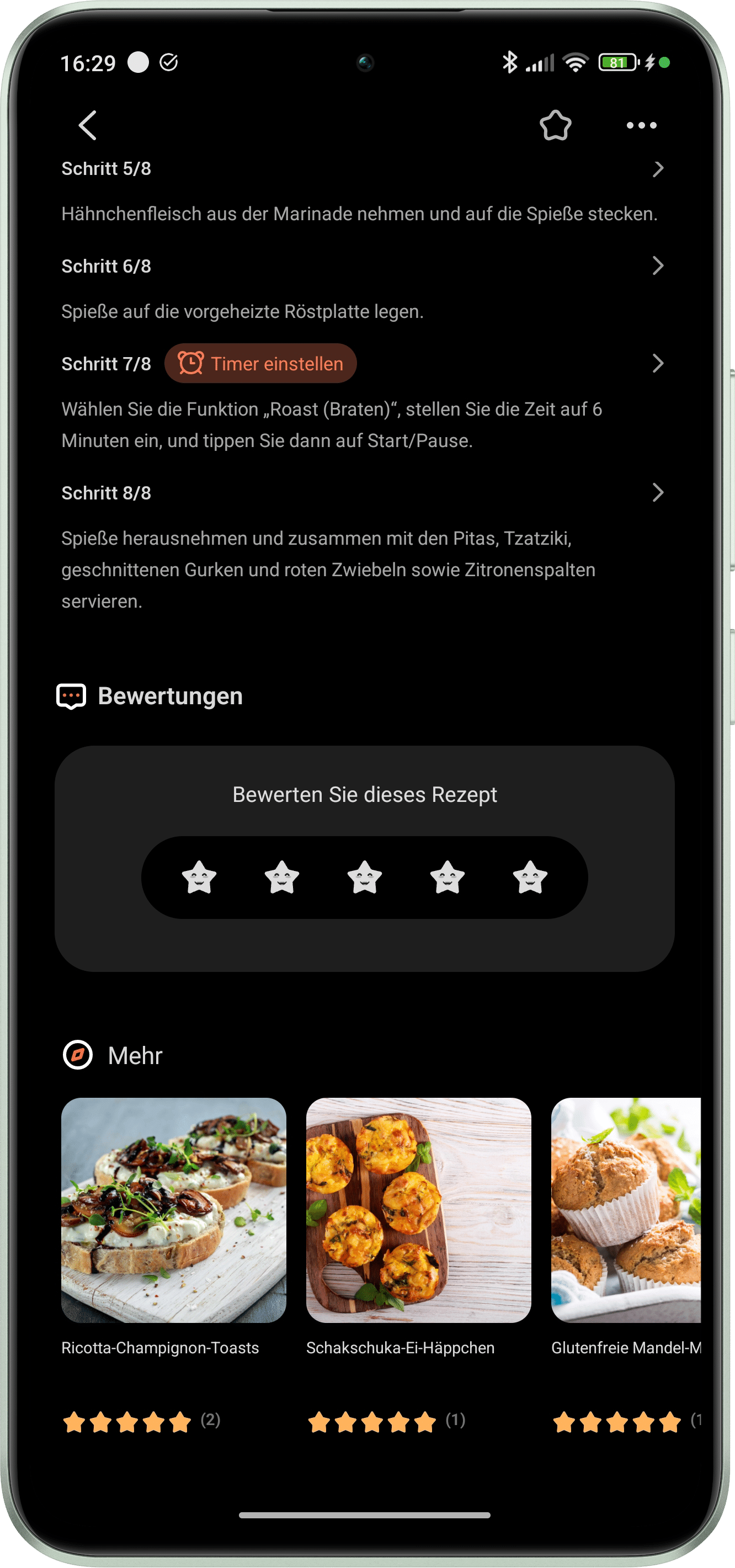 - VeSync bietet Rezepte, Kochzeit, und Schritt-für-Schritt-Anleitungen