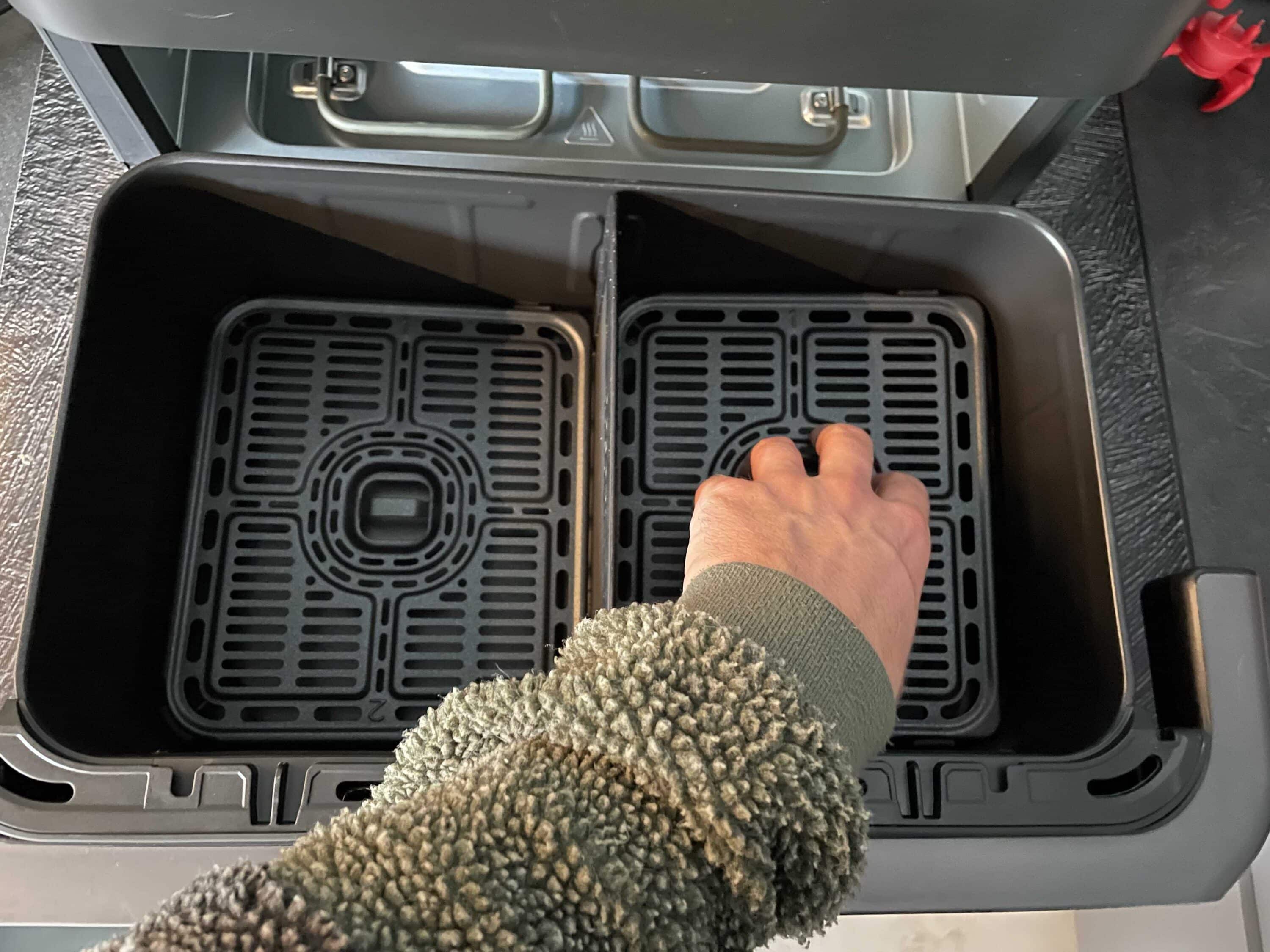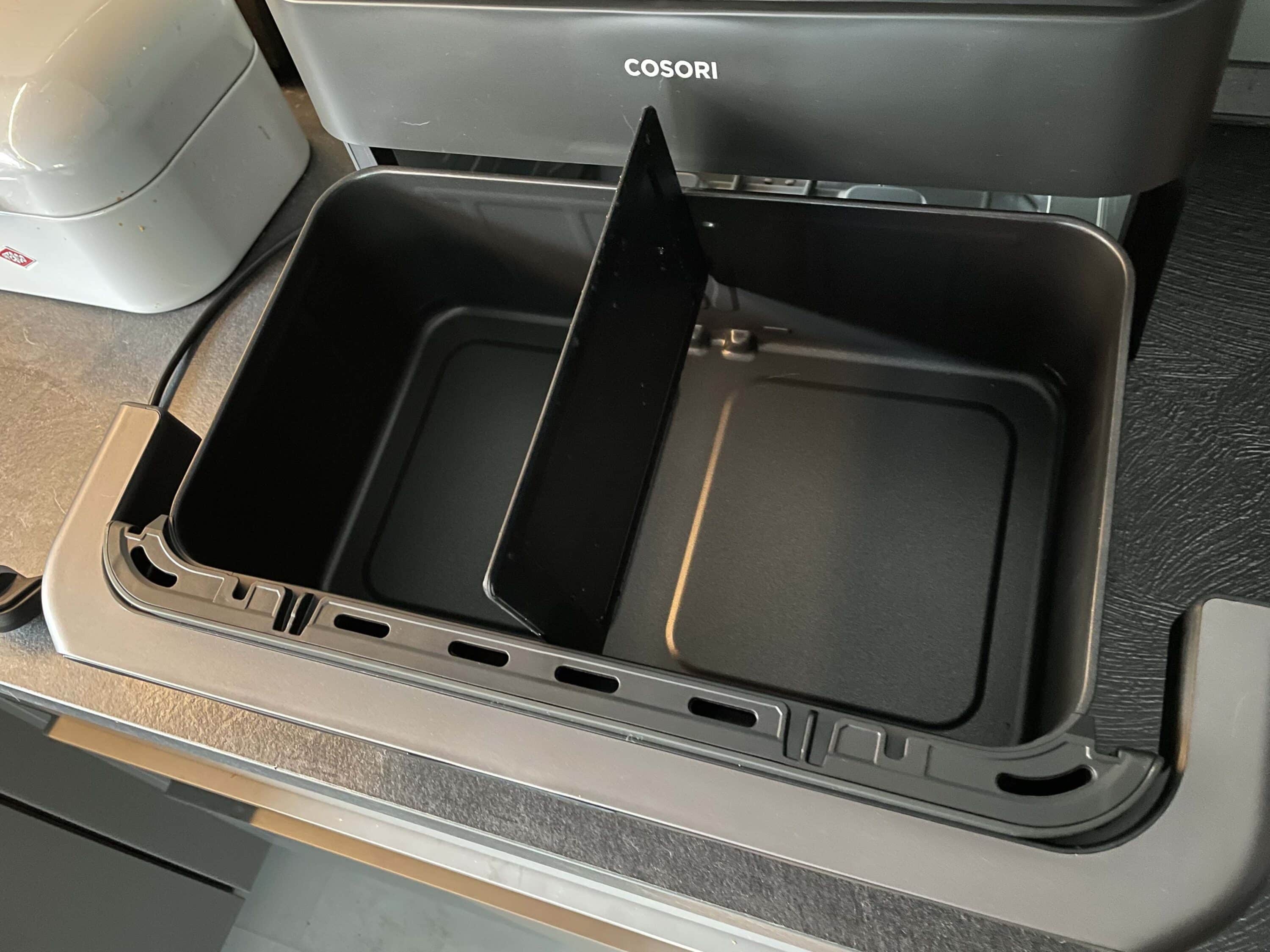 Und auch die geht schnell von der Hand und ist unkompliziert. Das liegt daran, dass fast alle Teile spülmaschinenfest sind. So lassen sich das große Garfach sowie die beiden Einlegeböden bequem im Geschirrspüler säubern. Lediglich die Trennwand empfiehlt COSORI per Hand abzuwaschen.