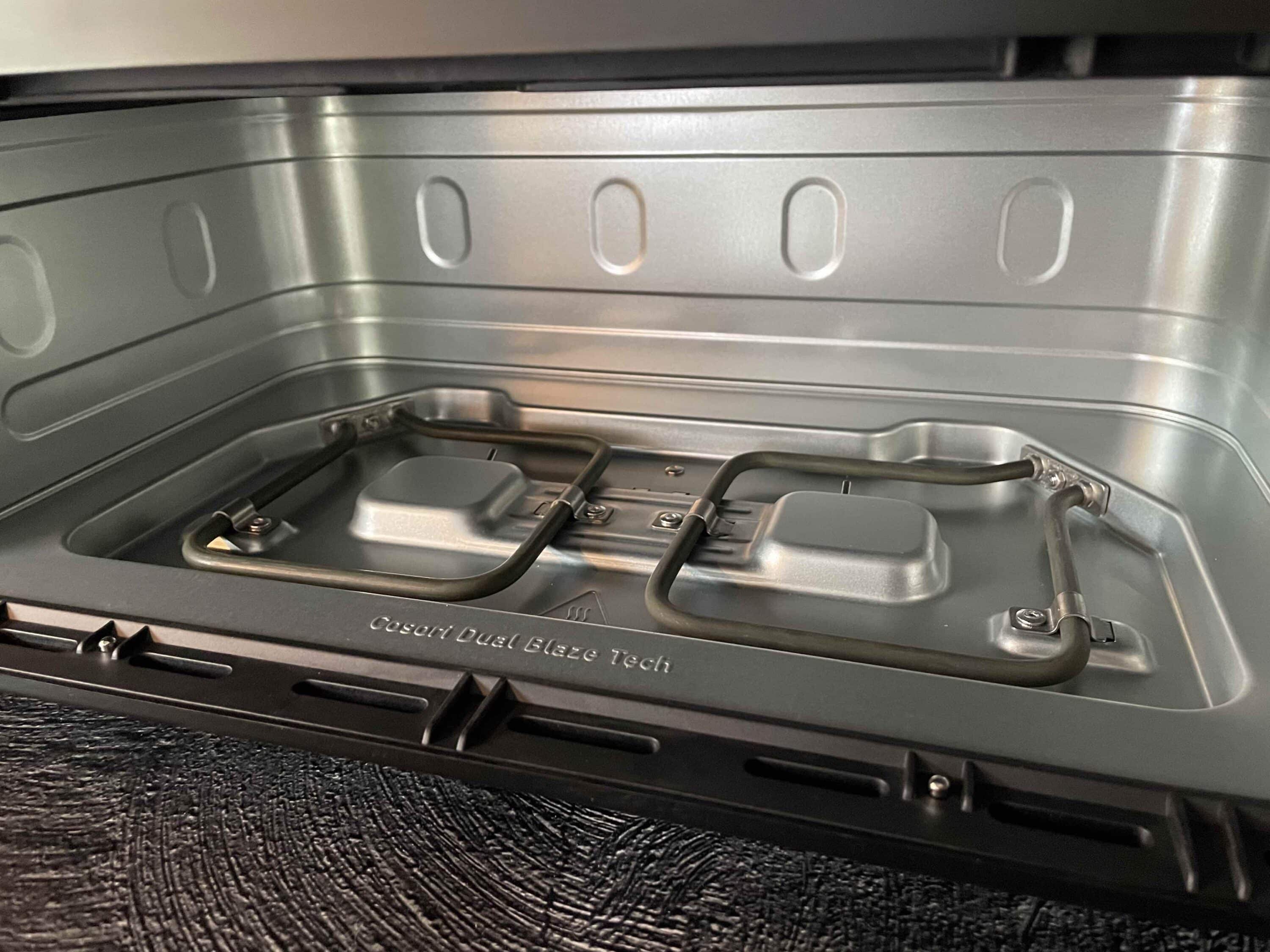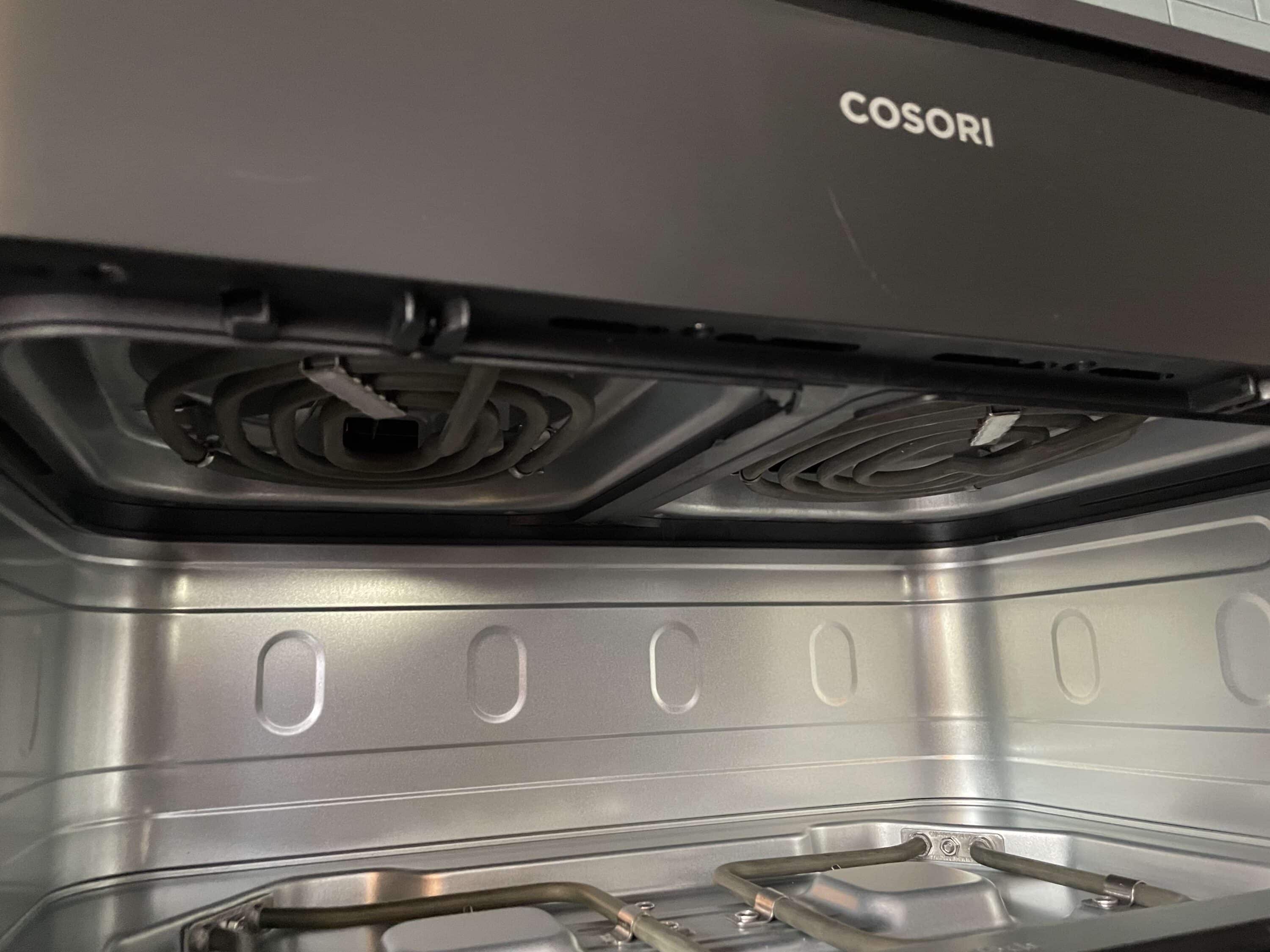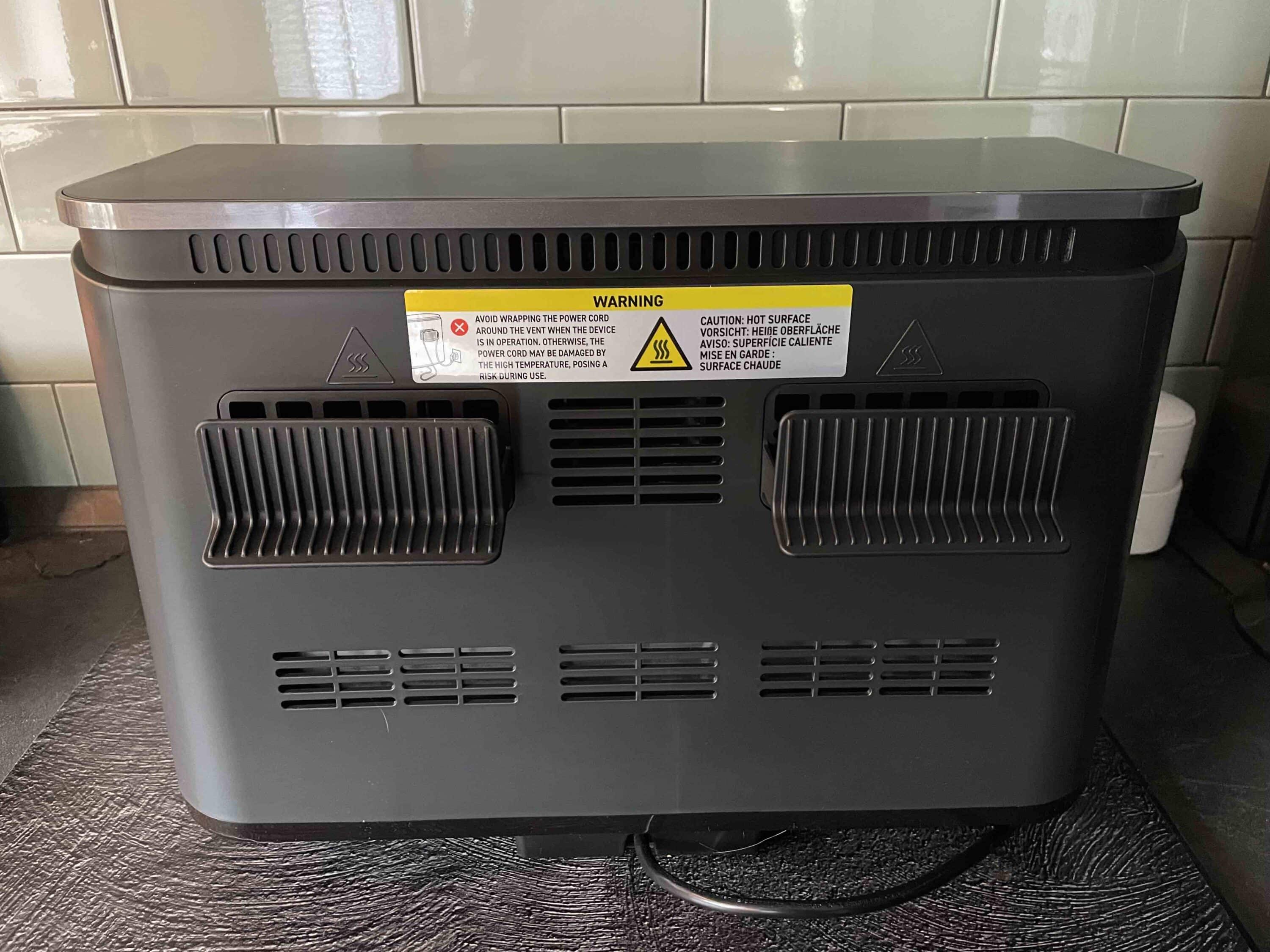 Das mit 10 Litern Fassungsvermögen geradezu riesige Backfach bestückt COSORI mit zwei Einlegeböden und einer optionalen Trennwand. So hat man die Wahl zwischen 2x 5 Liter oder 1x 10 Liter. An der Rückseite befindet sich das aus meiner Sicht etwas kurz geratene Netzkabel sowie eine praktische Kabelaufhängung. Alles in allem gefällt mir die Optik richtig gut. Auch die Verarbeitungsqualität lässt keine Wünsche offen und bewegt sich auf einem sehr hohen Niveau.