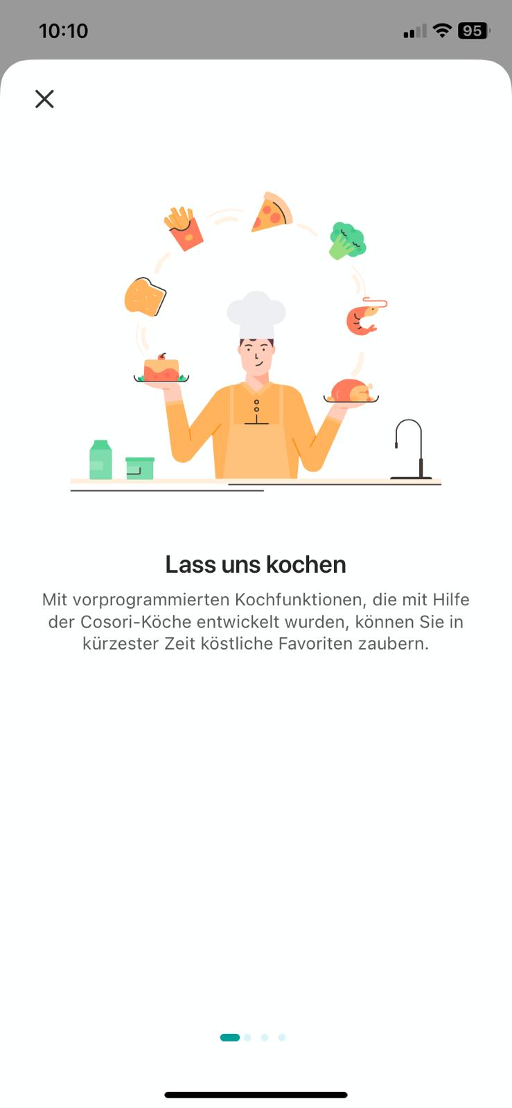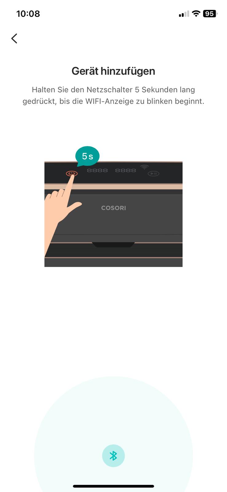 Steckt der Schukostecker in der Steckdose, kann es eigentlich schon losgehen. Um das Maximum aus der Heißluftfritteuse herauszuholen, solltet ihr jedoch zunächst einmal noch euer Smartphone zücken und die VeSync App herunterladen. Über diese verbindet man die Heißluftfritteuse mit dem Heimnetzwerk. Das ermöglicht die permanente Überwachung der COSORI – auch von unterwegs.