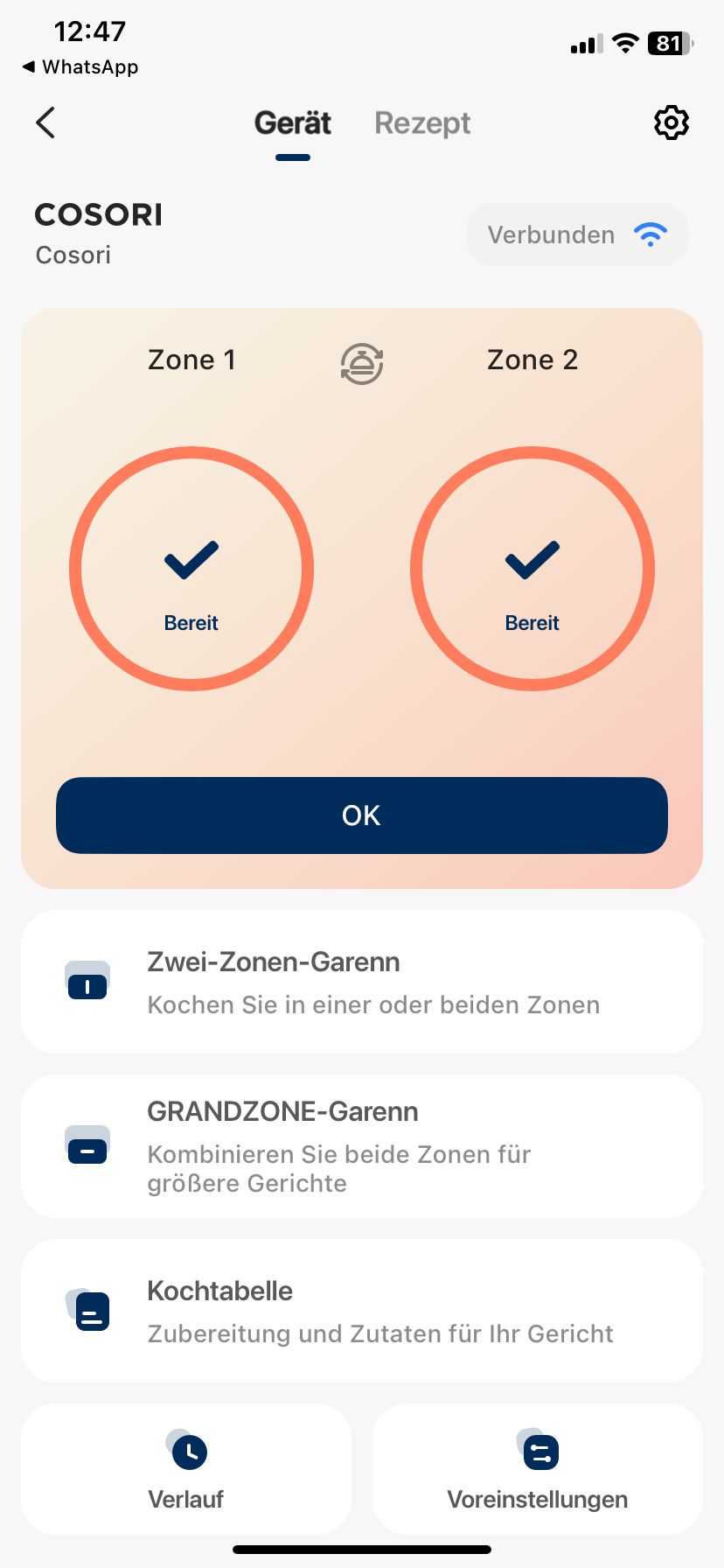 | Features | – 2-Zonen-Temperatursteuerung – Steuerung und Rezepte per App – Automatische Abschaltung |