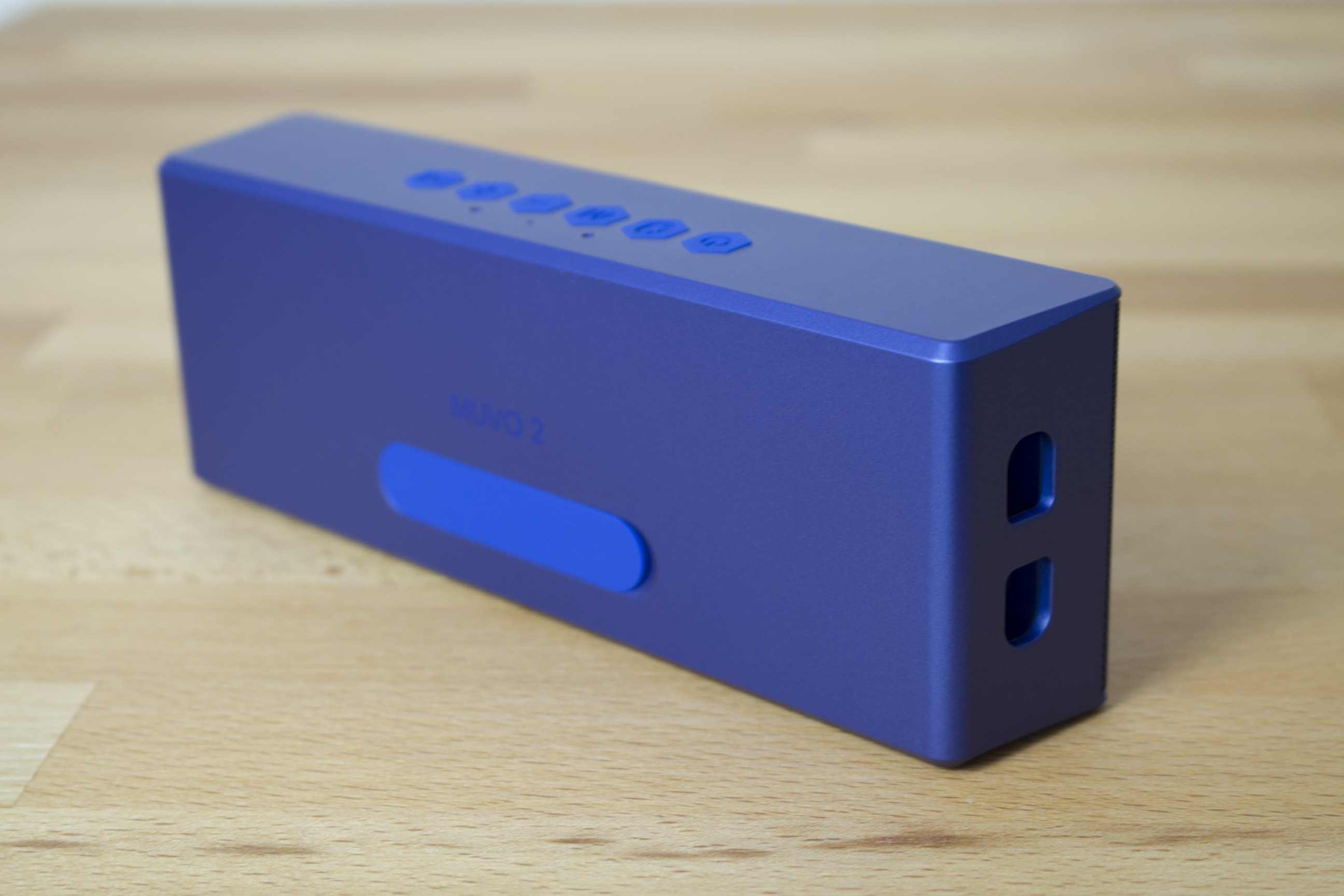 Äußerlich unterscheiden sich die beiden Lautsprecher vor allem hinsichtlich Größe und Gewicht sowie ihrer Bauart. So ist der Muvo 2c mit 165 g etwas mehr als halb so groß und schwer wie sein großer Bruder und bietet nur ein statt zwei Fullrange-Chassis, welches analog zum großen Bruder mit einer Passivmembran für den Bassbereich gekoppelt ist. Beim Muvo 2c befindet sich die Passivmembran jedoch relativ ungeschützt an der Gehäuserückseite. Hier ist bei der Handhabung und vor allem beim Transport zusammen mit spitzen Gegenständen Vorsicht geboten!