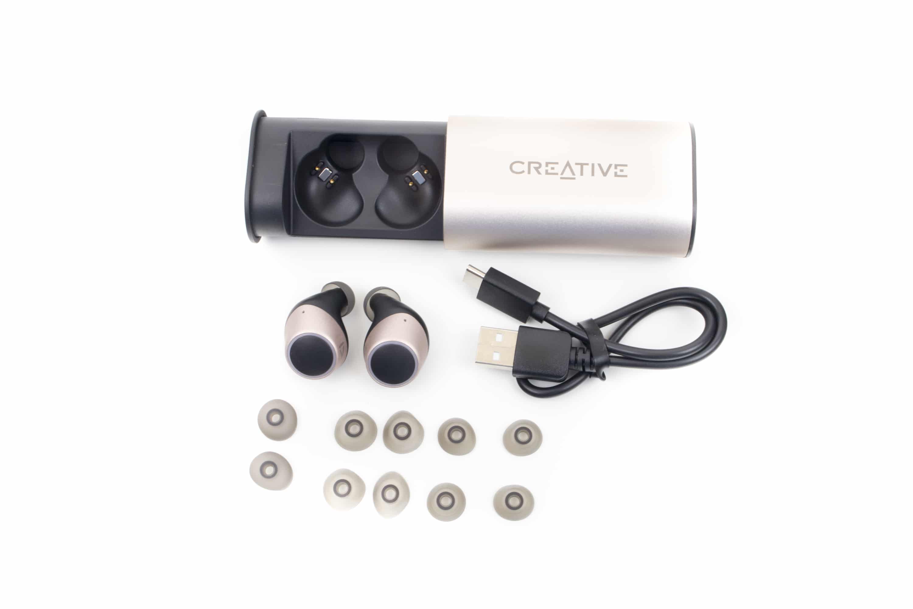 Für einen sauberen Klang sollen die Codes AAC, aptX und SBC sorgen. Außerdem unterstützen die In-Ears auch die Creative-Technologie Super X-Fi, die den Klang personalisiert.