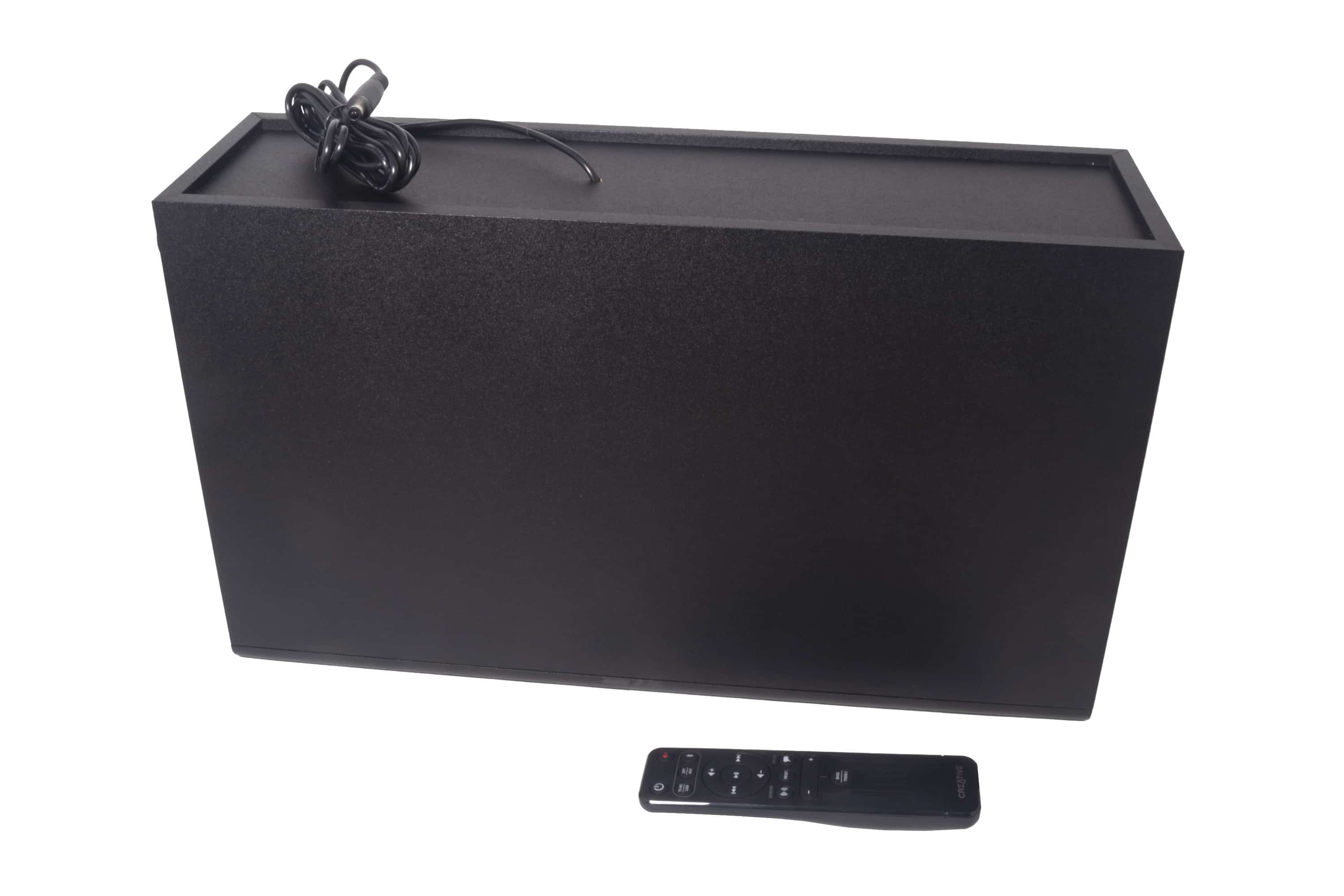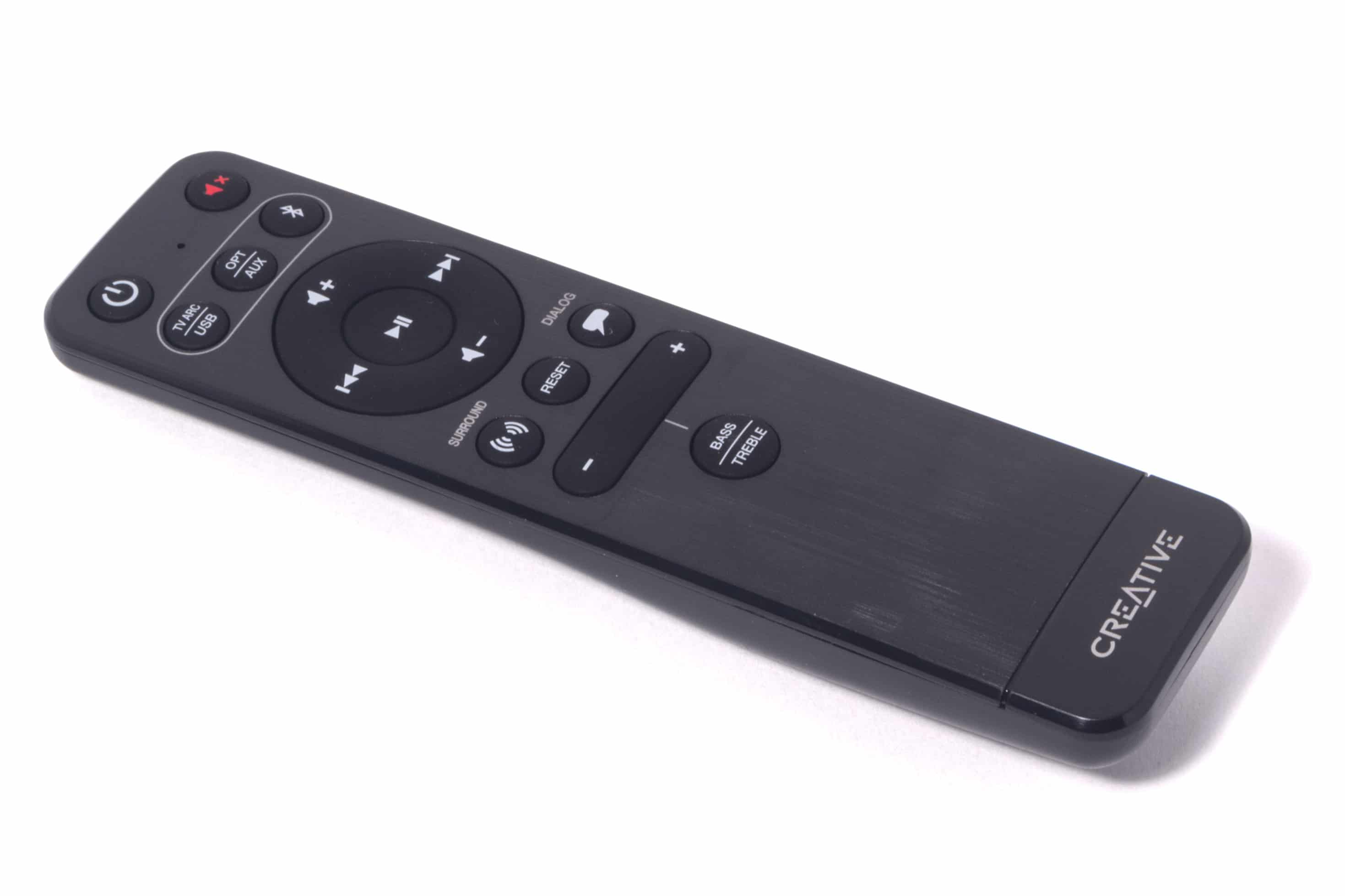 Die Stage V2 von Creative hat uns in ihrem Test unter anderem mit ihrer guten Verarbeitung, einem unaufdringlichen, simplen Design und den diversen Anschlüssen überzeugt, die sie nicht nur im Wohnzimmer zu einer sinnvollen Ergänzung machen, sondern überall dort, wo man den Klang beliebiger Unterhaltungselektronik aufwerten möchte. Im Test klappte die Verbindung mit den getesteten Anschlüssen stets zügig und zuverlässig, abgesehen von kleineren Aussetzern bei der Übertragung per USB. Bedienen lässt sie sich sowohl grundlegend über vier seitlich angebrachte Tasten, als auch erweitert über eine Infrarot-Fernbedienung, die optisch im Vergleich zur Vorgänger-Version ebenfalls stark überarbeitet wurde.