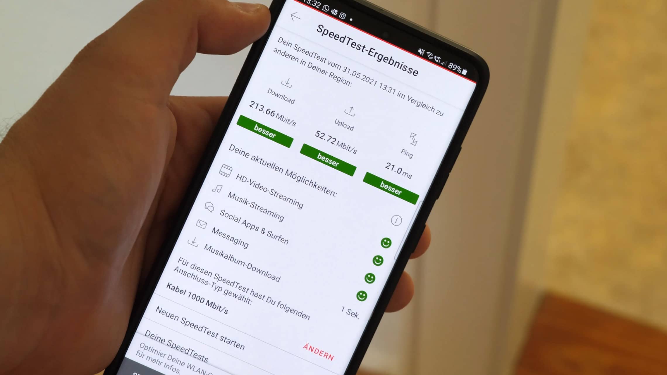 Während wir ohne die devolo Magic 2 WiFi next nur etwa 25 Mbit/s per WLAN erreichten, konnten wir mit den Adaptern mit 213 Mbit/s fast die zehnfache Geschwindigkeit erzielen – unser Gigabit-Internet wird dadurch zwar noch nicht ausgelastet, aber immerhin. Das ist natürlich abhängig von den Stromleitungen, weshalb die Geschwindigkeiten bei euch höher, aber auch niedriger ausfallen können.