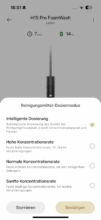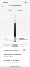 Sind diese Voraussetzungen gegeben, startet auch schon die Selbstreinigung. Deren Intensität könnt ihr in der App anpassen. Ich beließ es beim Smart Modus. Dieser richtet sich bei der Temperatur des Heißwassers und der Menge des Reinigungsmittels nach der ermittelten Verschmutzung des Wischsaugers. Hier sind bis zu 100°C möglich.