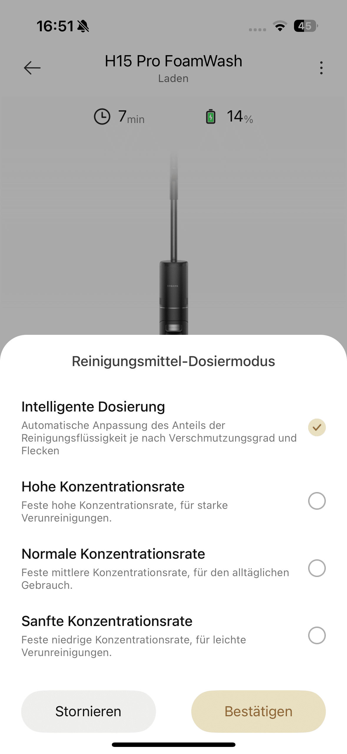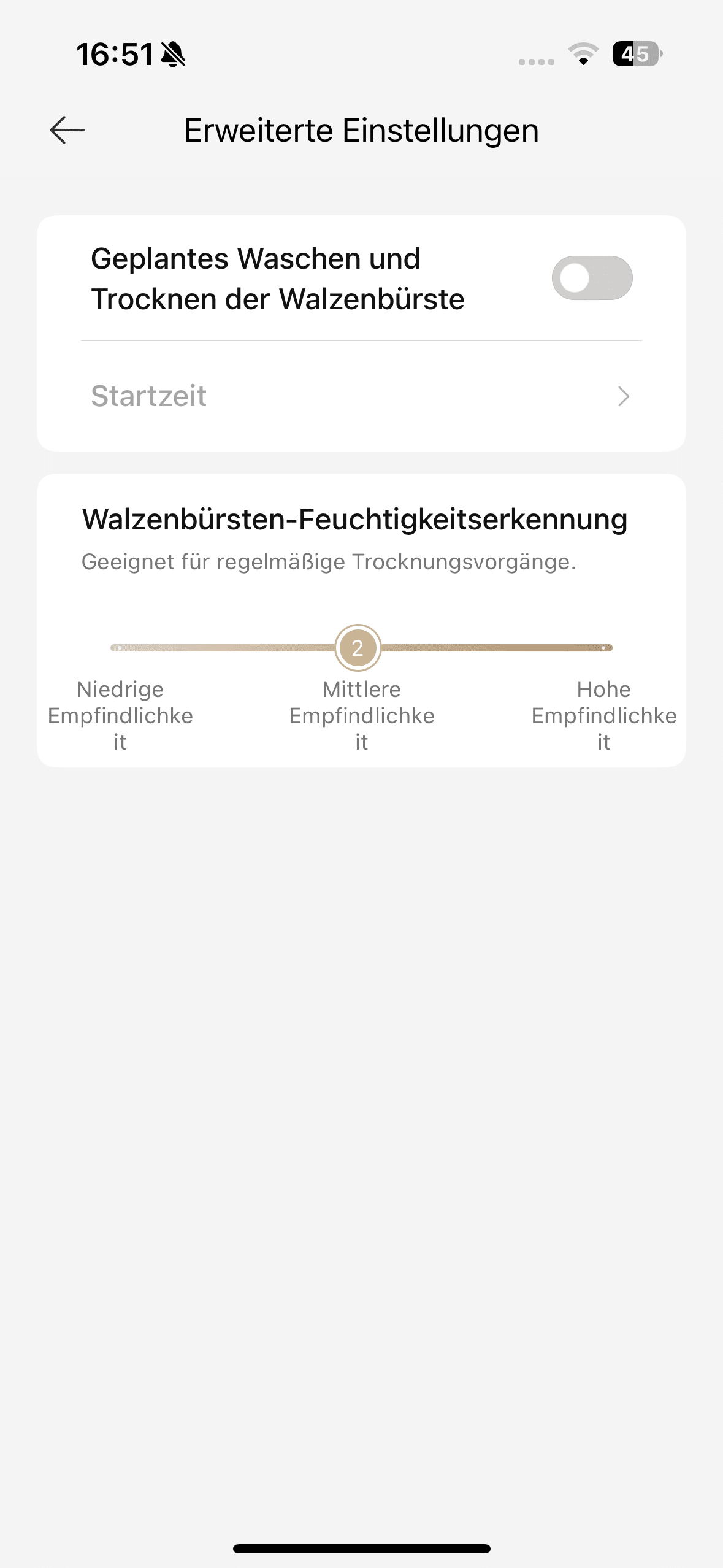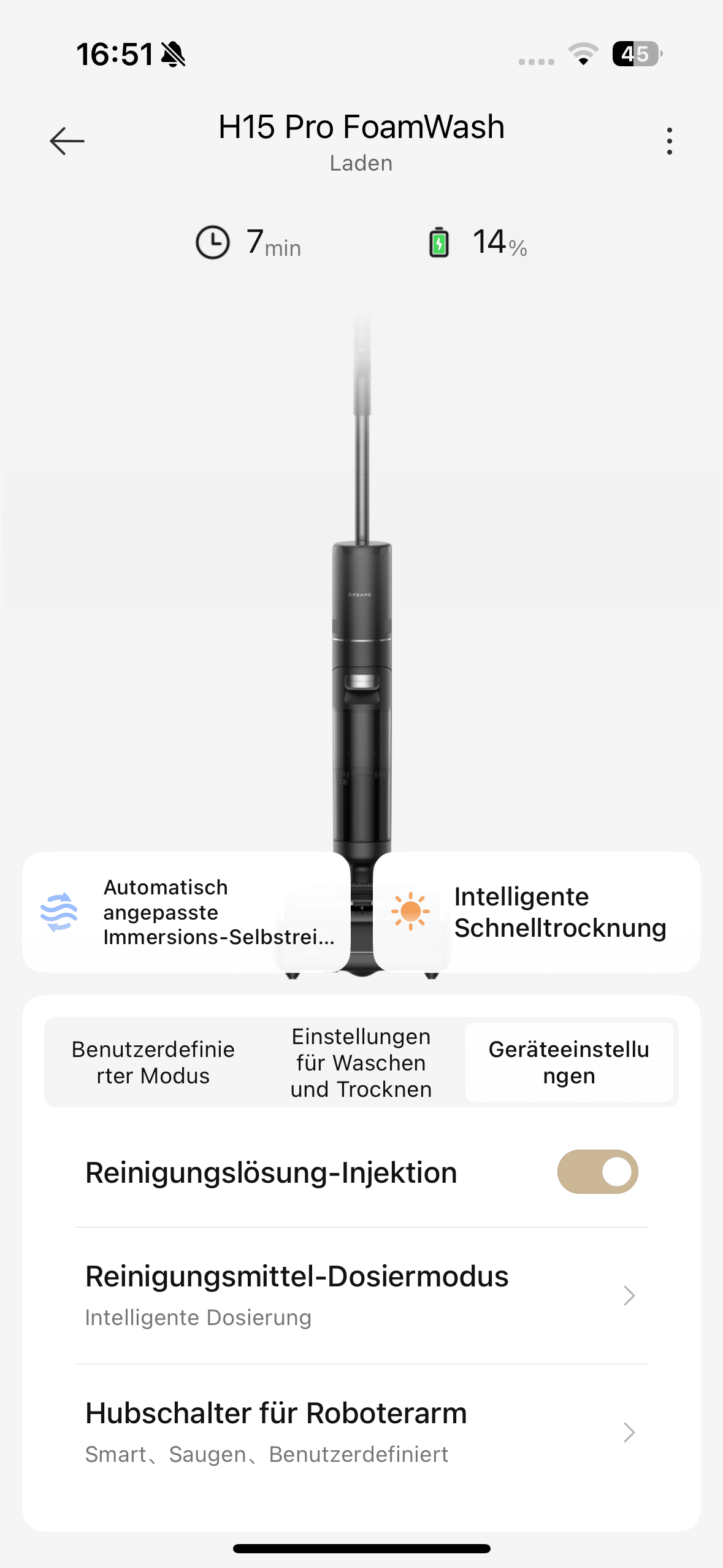 Auch ist in der App ein Feintuning der Gummilippe an der Front möglich. Weiterhin könnt ihr auch die Dosierung des Reinigungsmittels festlegen. Die App bietet also viele Anpassungsmöglichkeiten. Ich persönlich könnte darauf zwar gut verzichten, da der Wischsauger ab Werk bereits hervorragend konfiguriert ist, doch haben ist bekanntermaßen besser als brauchen.