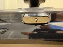 Diesen Roboterarm fährt der smarte Haushaltshelfer automatisch nach unten, wenn man den Wischsauger zurückfährt. Darüber sitzt eine Düse, die an die Sprühtechnologie des Mova X4 Pro (Test | € 599,00 *) erinnert. Doch anders als der MOVA arbeitet der Dreame nicht nur mit Heißwasser, sondern sprüht hier Schaum heraus. Das erklärt auch den Namenszusatz.