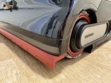 An der Unterseite kommt uns das Gerät dann wieder bekannt vor. Hier erblickt man die Reinigungswalze, die dank nahezu randlosen Designs eine umfassende Reinigung auch entlang von Fußbodenleisten und Möbelkanten verspricht. Weiterhin befinden sich hier die beiden Räder, die euch dank Motorisierung bei Vorwärts- und Rückwärtsbewegungen unterstützen.