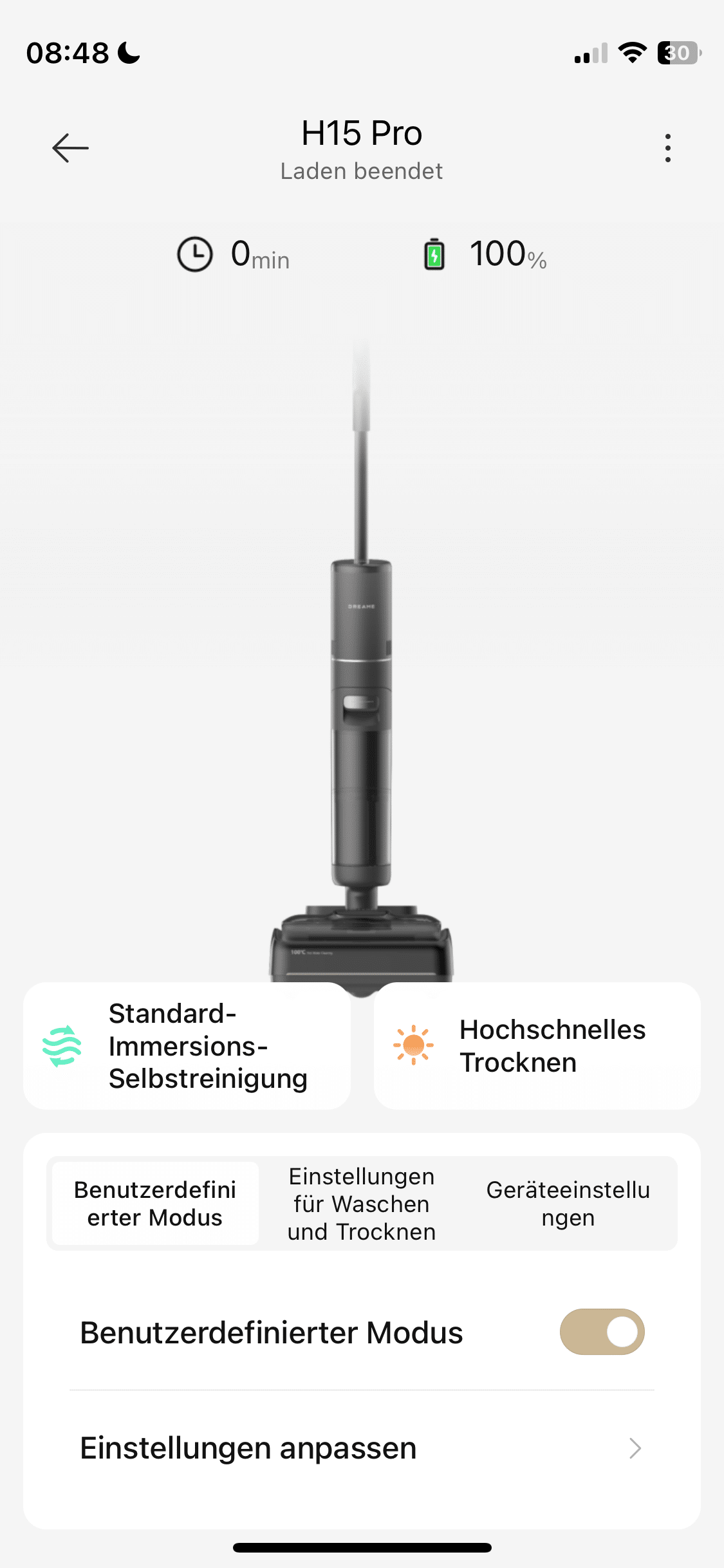 Die Konkurrenz von Tineco verzichtet mittlerweile auf einen App-Support. Dreame hingegen sieht in der Konnektivität zwischen mobilem Gerät und Saugwischer offenbar weiterhin einen Mehrwert. Schließlich will der H15 Pro mit einem App-Support punkten. In der App kann man nicht nur den Status des smarten Haushaltshelfers einsehen. Obendrein lassen sich zahlreiche Einstellungen zum Feintuning des Saugwischers vornehmen.
