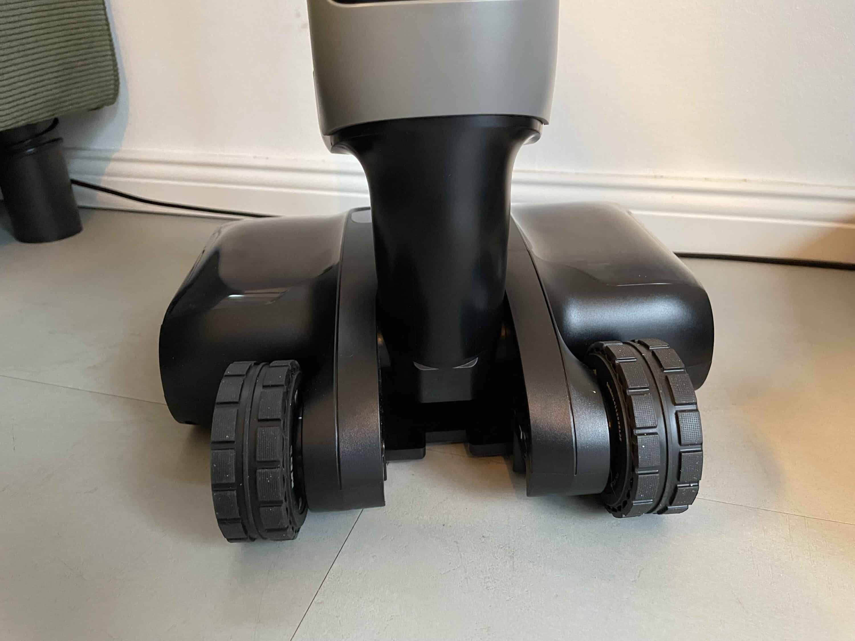 Wer schon einmal einen Saugwischer verwendet hat, der weiß, dass die Geräte in den seltensten Fällen leicht sind. Das ist auch beim Dreame H15 Pro der Fall. Im Einsatz vergisst man das schnell. Schließlich hat Dreame ein paar hilfreiche Features implementiert. Da wären zum einen die motorisierten Räder an der Unterseite. Als Nutzer werdet ihr beim Schieben bzw. Zurückziehen des smarten Haushaltshelfers unterstützt.