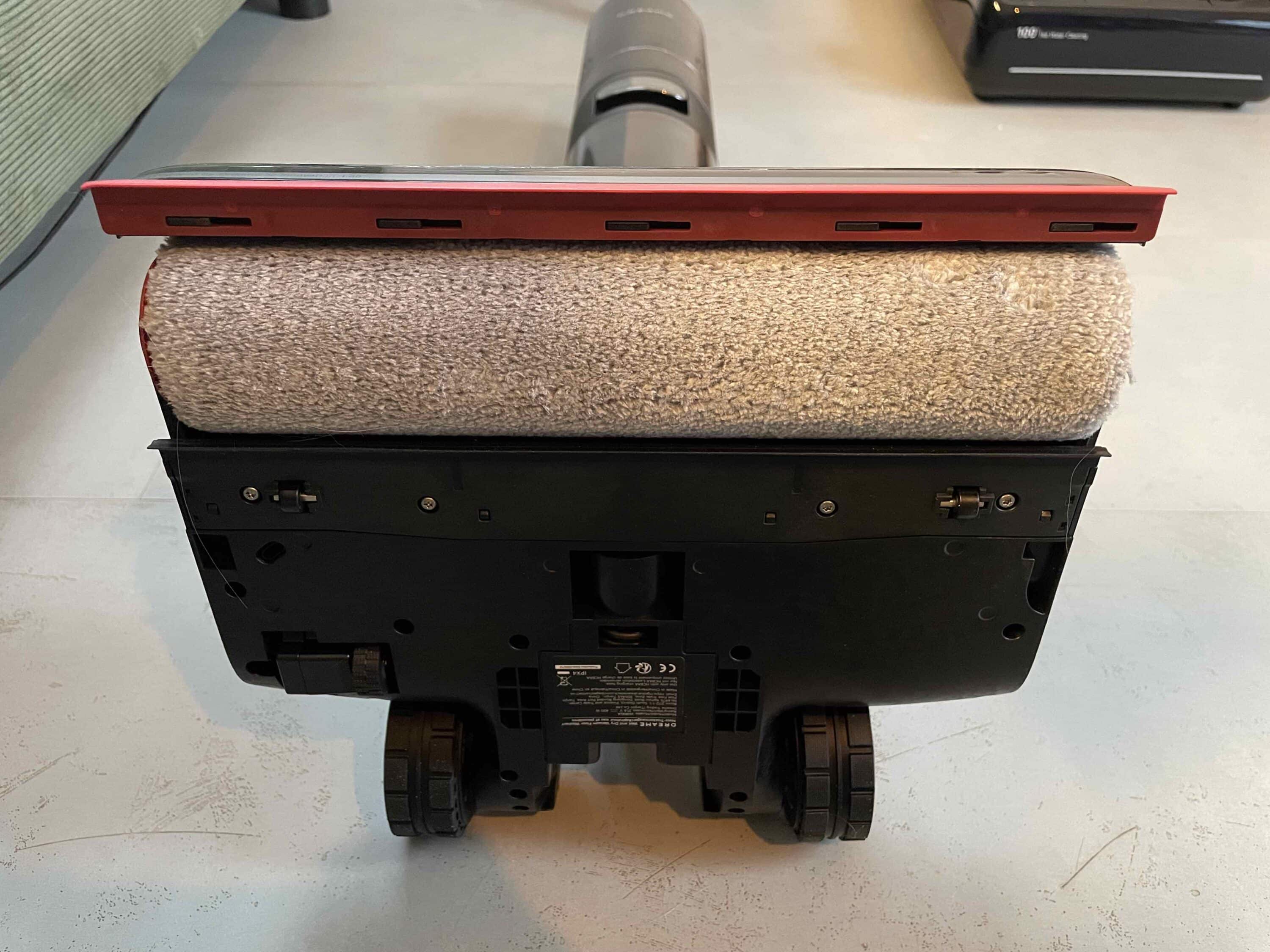 Grund hierfür ist zum einen der spezielle Kamm, welcher an der Reinigungswalze angebracht ist und Schmutzrückstände aus der Walze heraus kämmt. So verteilt der Dreame keine Schmutzrückstände, die an der Walze haften, sondern saugt diese direkt auf. Weiterhin zahlt sich die Kombination aus breiter Reinigungswalze und dem oben beschriebenen Schaber aus.