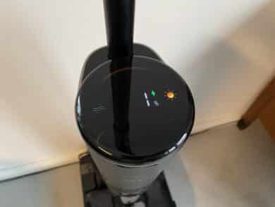 Im Anschluss an jede Reinigungstour steht die Selbstreinigung des H15 Pro an. Diese startet ihr in der Ladestation. Hierfür drückt ihr einfach die entsprechende Taste auf der Oberseite des Handgriffs. Der Reinigungsvorgang lässt sich dann nachverfolgen. So nutzt die Station Frischwasser aus dem Wassertank des Saugwischers und erhitzt dieses auf beeindruckende 100°C. Dabei werden Bakterien zuverlässig abgetötet.