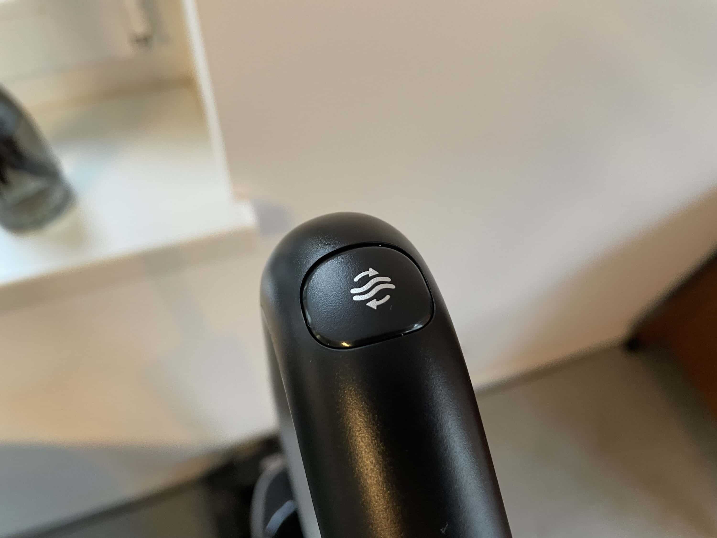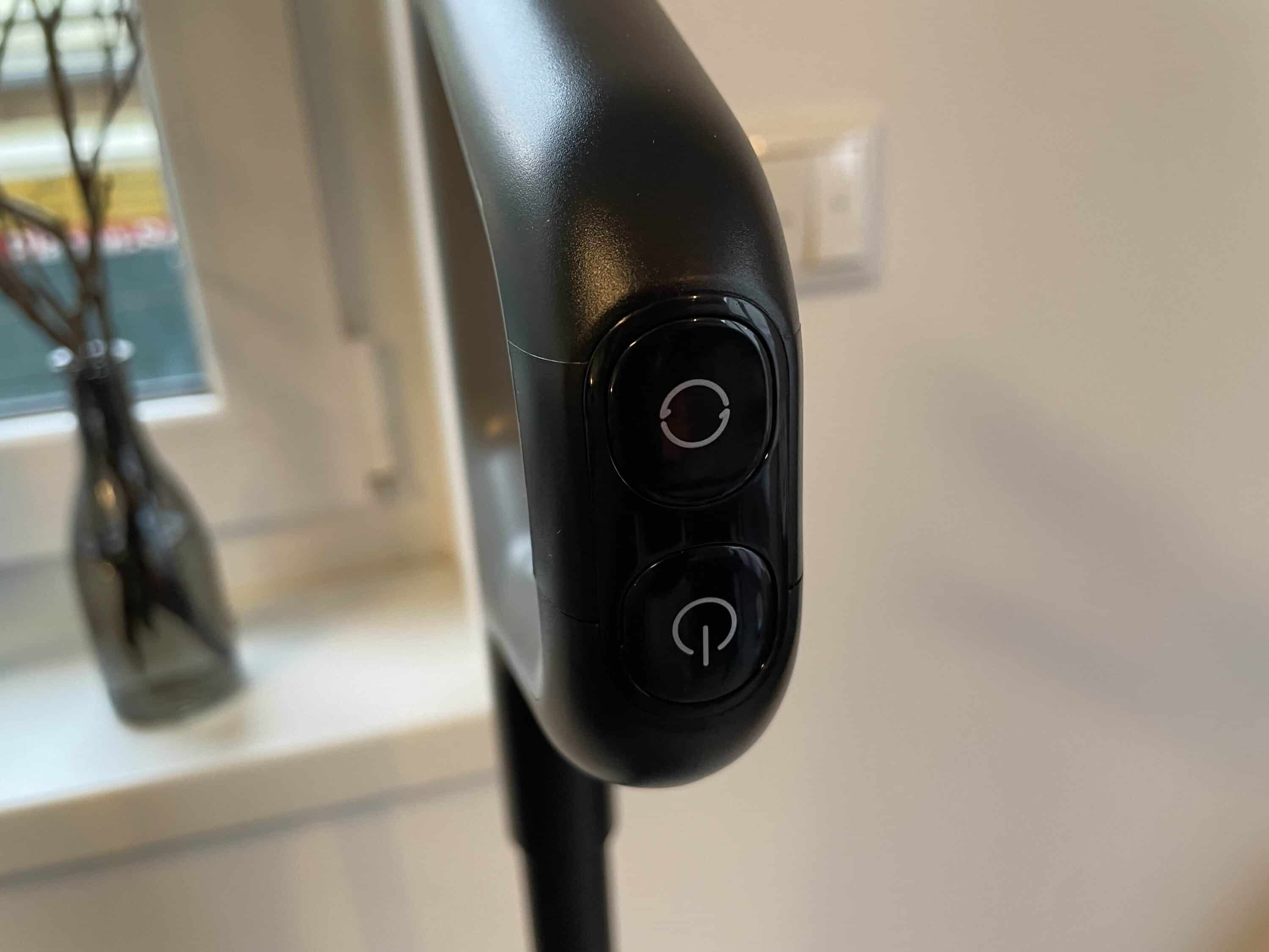 Die Bedientasten lassen sich bequem mit dem Daumen erreichen. Der Handgriff mündet in der Haupteinheit. Hier sitzt das technische Herzstück des Saugwischers. Neben Display, Motor und Akku sitzt hier auch der große Schmutzwassertank. Wer den Frischwassertank vergebens sucht, der muss einen Blick auf die Bürsteneinheit im unteren Bereich werfen.