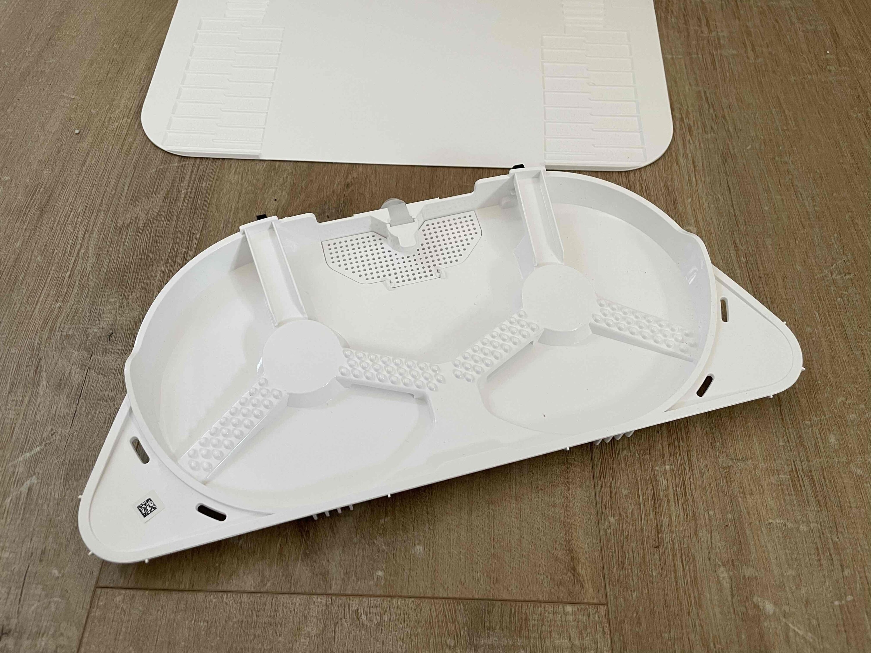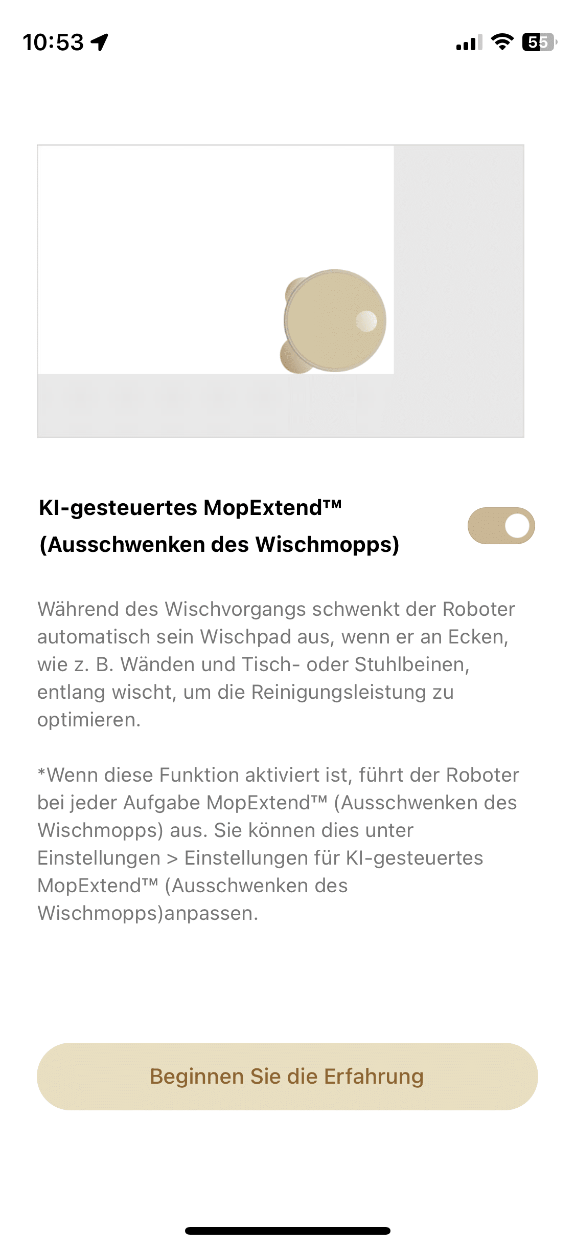 Und das liegt am überarbeiteten Design der Wischpads. Eines der Wischpads ist nun nämlich ausfahrbar, was eine deutlich bessere Kantenreinigung ermöglicht. Fährt der Robo an der Fußbodenleiste oder an Stuhlbeinen entlang, wird das Wischpads kurzerhand ausgefahren, um keinen ungereinigten Rand zu hinterlassen.