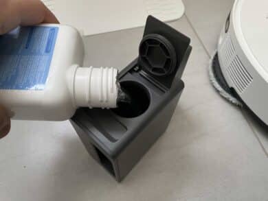 Neben der Moppwäsche trifft die Station aber noch weitere Aufgaben. So füllt sie nicht nur den Akku des Saugers, während dieser auf seinem Parkplatz steht. Darüber hinaus füllt die Station den integrierten Wassertank des Robos. Der Vorteil liegt darin, dass der smarte Haushaltshelfer seine Wischmopps selbstständig feucht halten kann. So muss er weniger oft zur Moppwäsche in die Station zurückkehren.