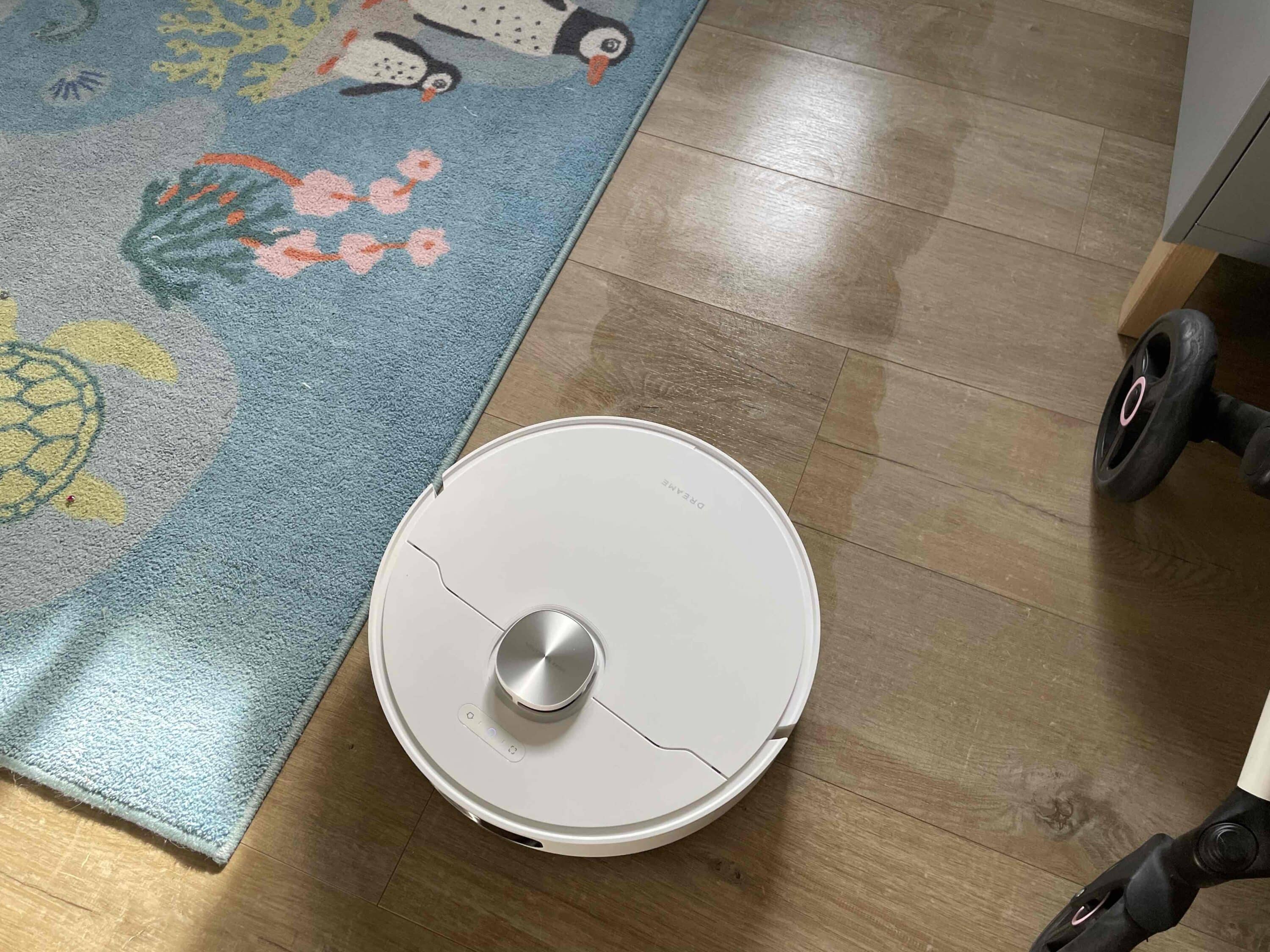 Meckern auf hohem Niveau muss ich über die Reinigung in Ecken. Hier wirkt die Seitenbürste nämlich ein wenig überfordert. Vielleicht sollte Dreame auch mal zur ausfahrbaren Seitenbürste eines Roborock Qrevo rüber schielen. Eine überzeugende Performance gab es auch auf Teppichboden. Der Ultraschallsensor auf der Unterseite erkannte meinen Teppichboden zuverlässig. Sobald er den Teppich befuhr, erhöhte er automatisch seine Saugleistung.