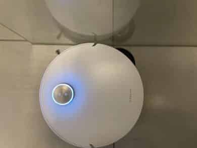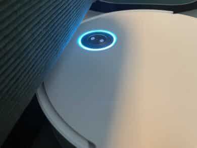 Zum einen kommt das Türmchen, das die für die Navigation notwendige Technik beherbergt, mit einem stylischen Leuchtring daher. Dieser erinnerte mich im Test mit seinen pulsierenden Lichtspielen in verschiedenen Farben ein wenig an den Leuchtring eines Amazon Echo Dot (€ 44,99 *). Eine weitere Neuerung: Auf der Oberseite des Turms platziert Dreame kurzerhand die Bedientasten, die eine rudimentäre Steuerung des Haushaltshelfers ermöglichen.