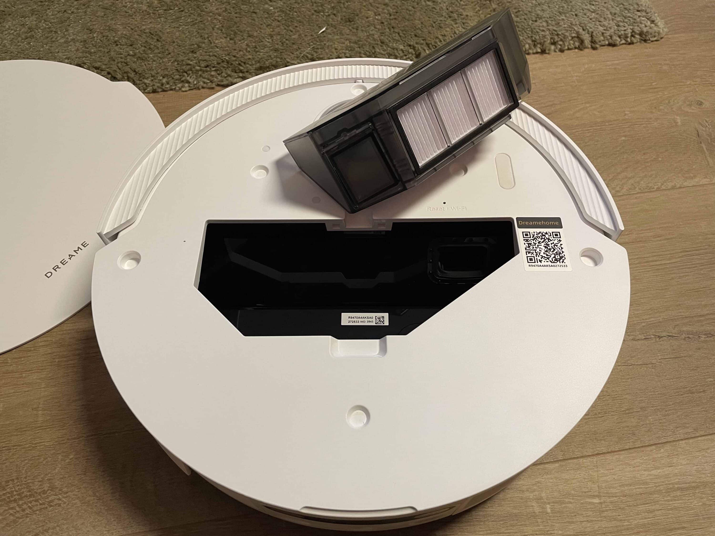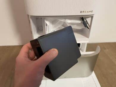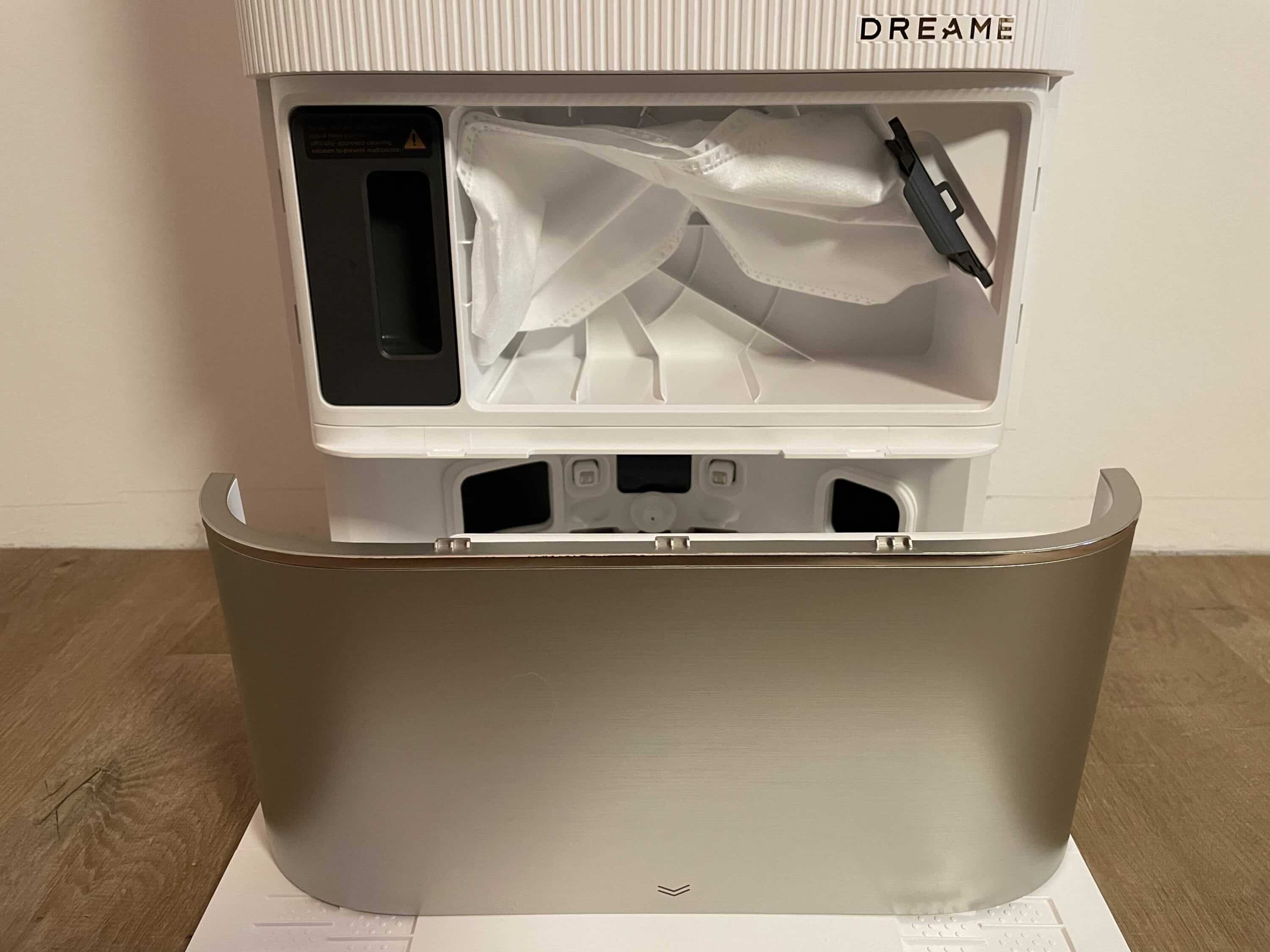 Um die Reinigung weiter zu verstärken, mengt der Dreame dem Frischwasser automatisch Reinigungsmittel bei. Dieses Prinzip kennen wir unter anderem vom Eufy S1 (Test | € 1.099,00 *) und dem Eufy S1 Pro (Test | € 1.088,00 *). Angesichts der umfangreichen Features der AiO-Station ist die Wartung denkbar einfach. Laut Dreame muss man den Staubbeutel nur etwa alle 100 Tage durch einen neuen ersetzen.