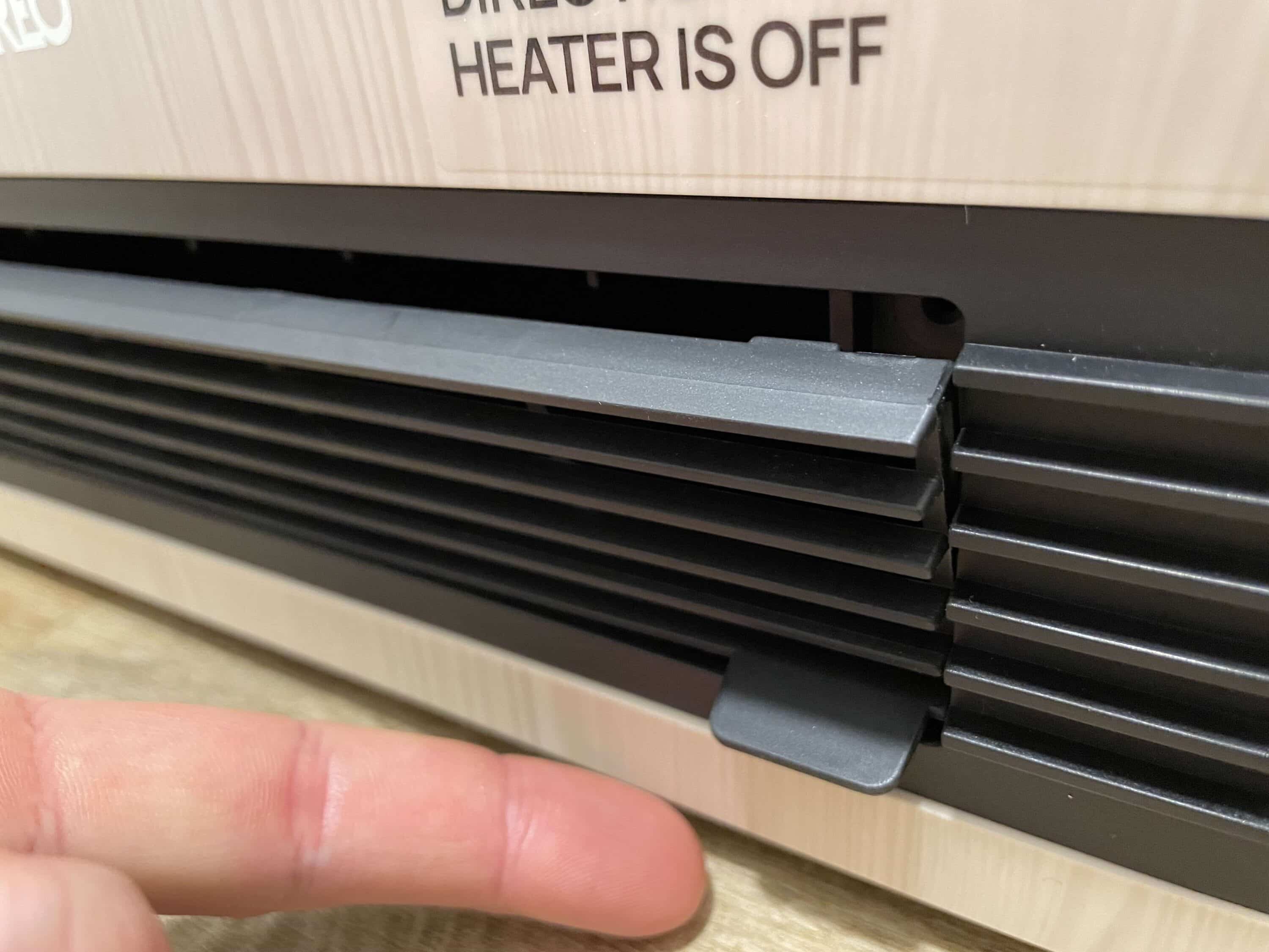 Für schnellstmögliches Heizen stehen dann die drei Stufen H1 (800 W), H2 (1200 W) und H3 (2000 W) zur Wahl. Die aus Kunststoff gefertigten Luftauslässe lassen sich in ihrer Ausrichtung anpassen und um 30° nach oben oder unten schwenken. Ein Schwenken nach recht oder links ist hingegen leider nicht möglich. Ein Heizgerät ist natürlich kein Spielzeug und birgt in sich auch ein paar Risiken. Dementsprechend spendiert DREO seiner WH517S einige durchdachte Sicherheitsfeatures.