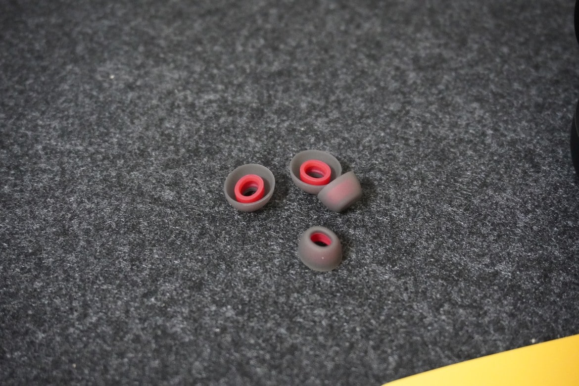 Jeweils drei Paare davon in unterschiedlichen Größen legt der Hersteller bei. Bei genauerer Prüfung stellen wir fest, dass es sich bei Variante A um etwas härtere Silikon-Aufsätze handelt, während Modell B deutlich weicher ausfällt und daher nicht ganz so gut abdichtet. Für den aufgerufenen Preis von unter 70 Euro fällt der Lieferumfang überraschend groß aus, das gefällt.
