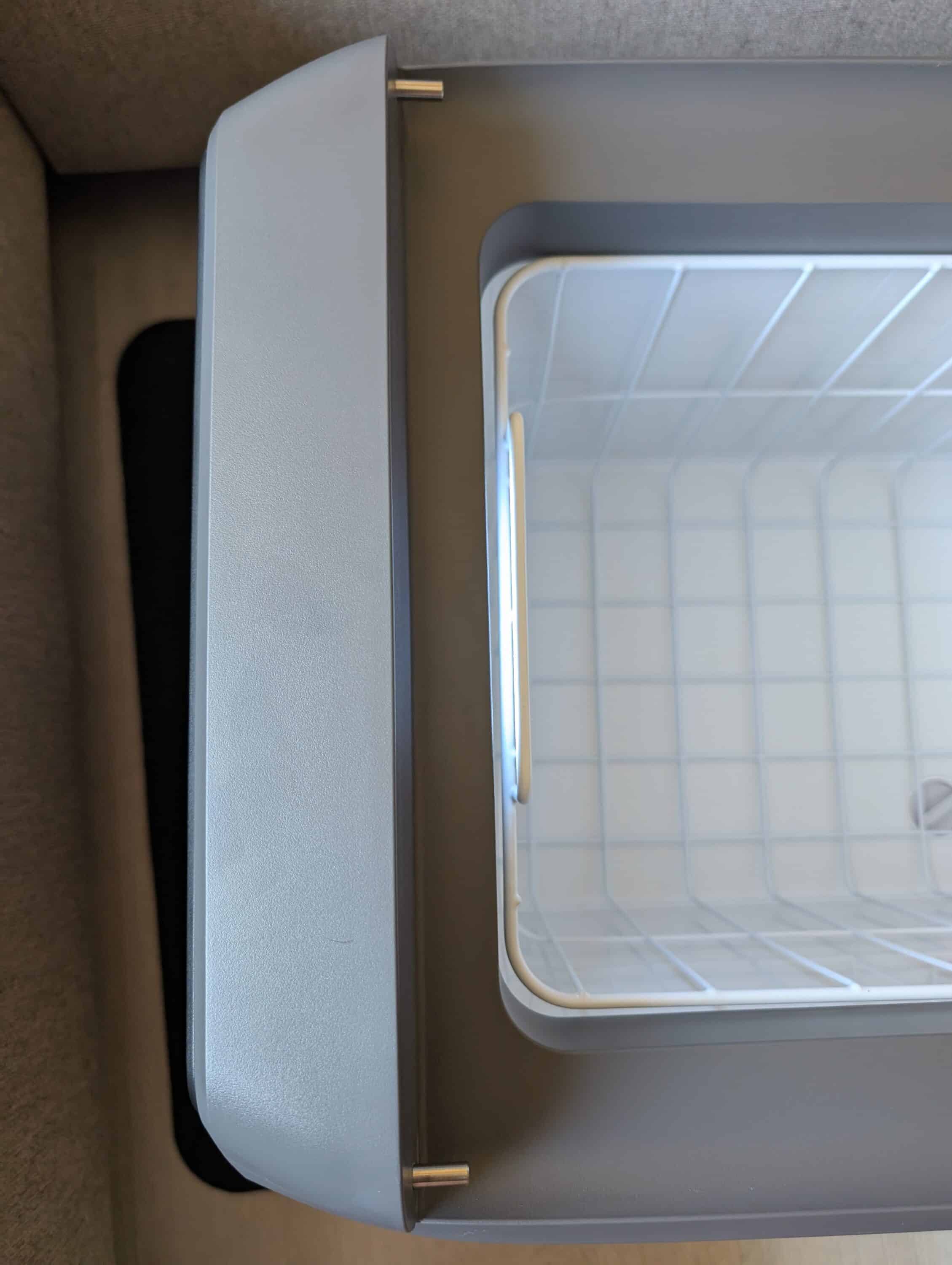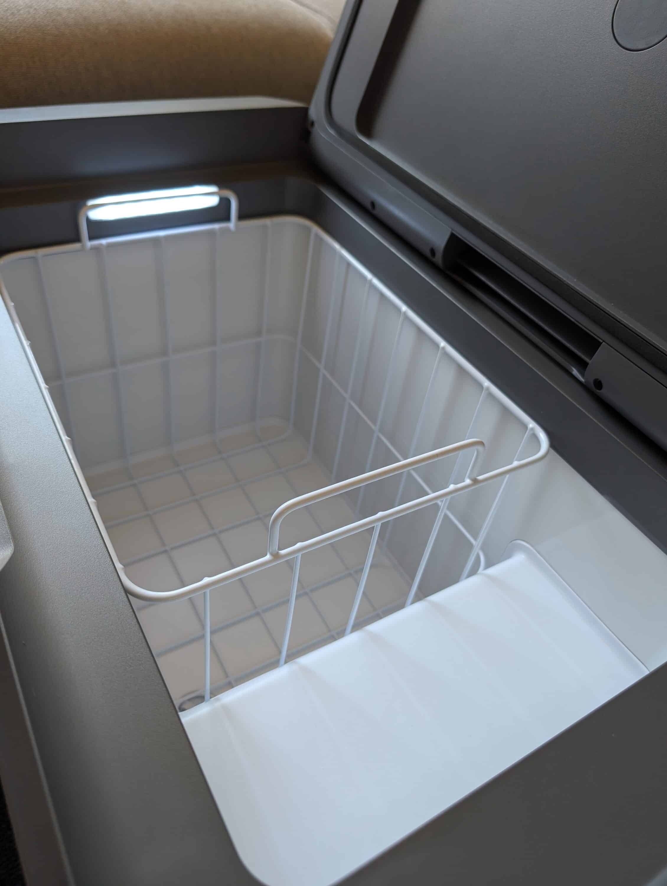 Bei allem Lob zeigen sich im Detail einige Schwächen. Der Drahtkorb im Inneren wackelt und verrutscht beim Transport – für eine 700-Euro-Kühlbox hätte man stabilere Innenausstattung erwartet. Das stört den sonst aufgeräumten Innenraum und nervt bei längeren Fahrten.