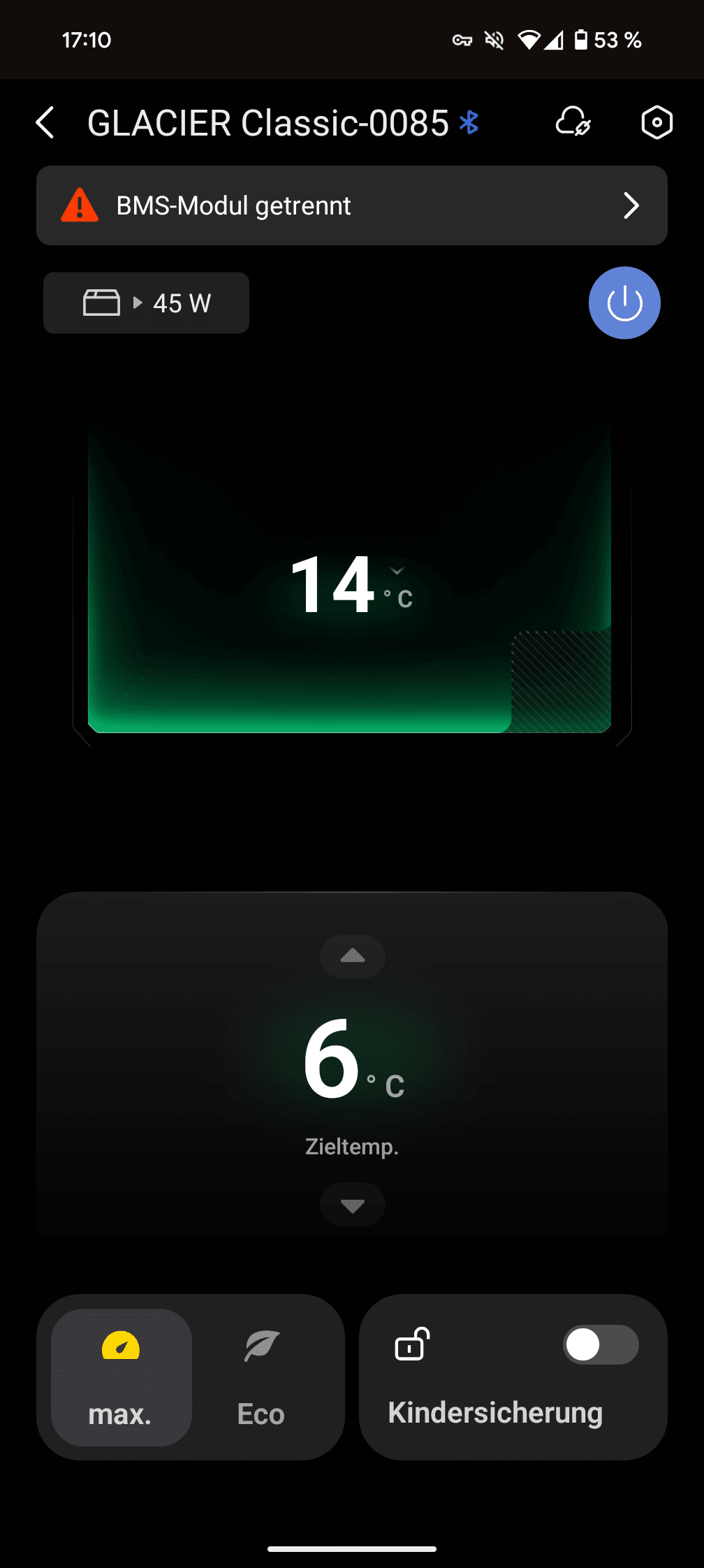 Dafür sorgen auch die beiden Modi: Eco spart Strom und reagiert etwas träger, Max regelt schneller aber verbraucht entsprechend mehr Energie. Für normalen Betrieb reicht Eco völlig aus, nur beim ersten Runterkühlen oder nach längerem Öffnen lohnt sich der Wechsel zu Max.