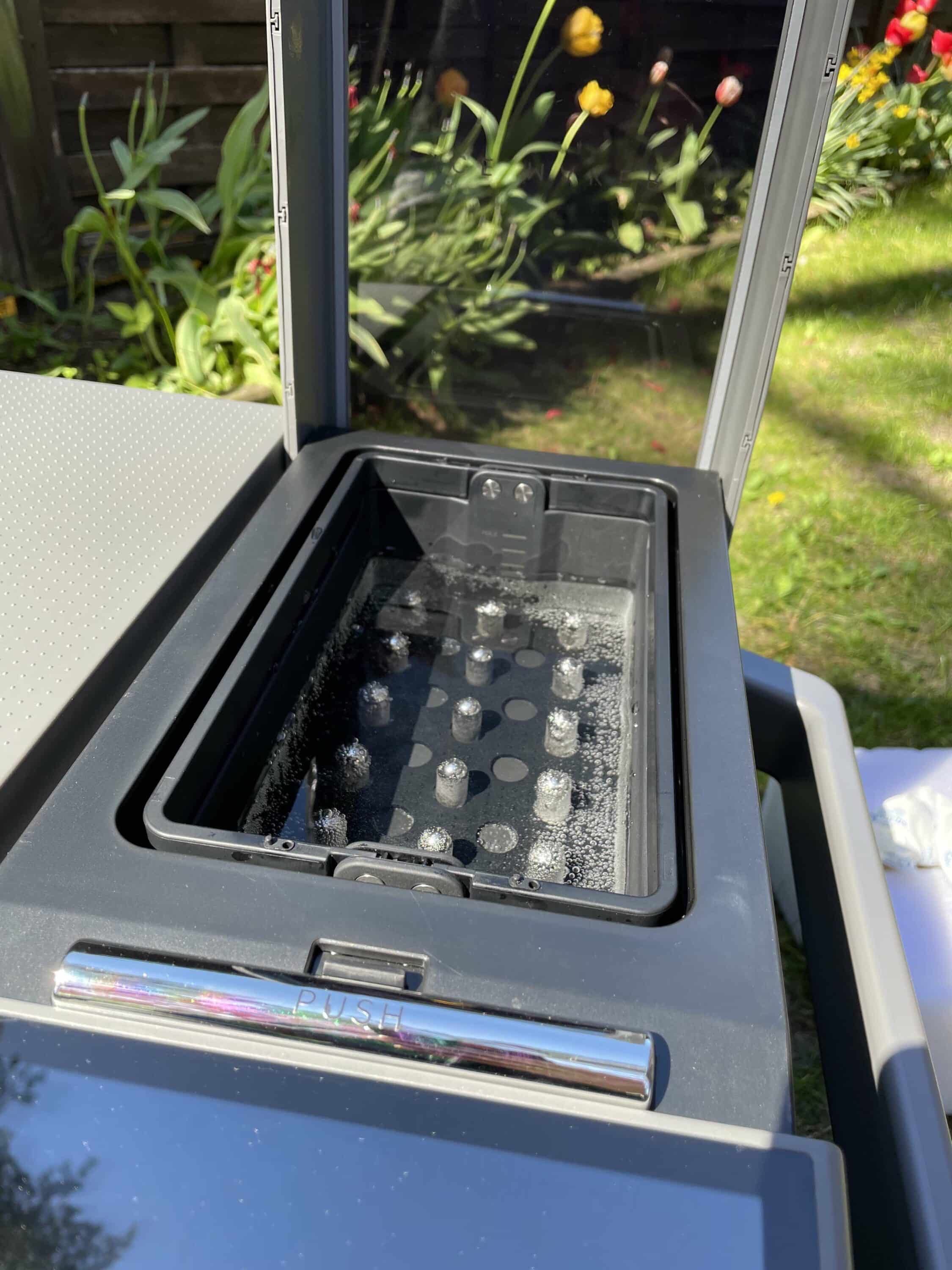 Zu einer guten Party oder einem sommerlichen Sundowner gehören natürlich auch Eiswürfel dazu. Und auch zu diesen soll der EcoFlow Glacier in der Lage sein. Das Ganze geht kinderleicht von der Hand. So befindet sich im Gerät ein Behälter, den du mit Leitungswasser füllst. Eine passende Markierung zeigt dir, wie hoch das Wasser sein soll.
