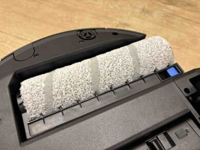 Wie bereits erwähnt setzt ECOVACS anders als bei älteren Modellen wie einem ECOVACS T20 OMNI (Test | € 299,00 *) auf keine Wischpads, sondern eine Wischrolle. Das System bezeichnet der Hersteller als OZMO ROLLER 2.0. Die Walze rotiert bei der Reinigung mit 200 Umdrehungen pro Minute und bietet einen Anpressdruck von 3.800 Pa. Das soll dafür sorgen, dass selbst hartnäckige Verschmutzungen keine Chance haben. In der Praxis zeigt die Wischfunktion Licht-, aber auch Schattenseiten.