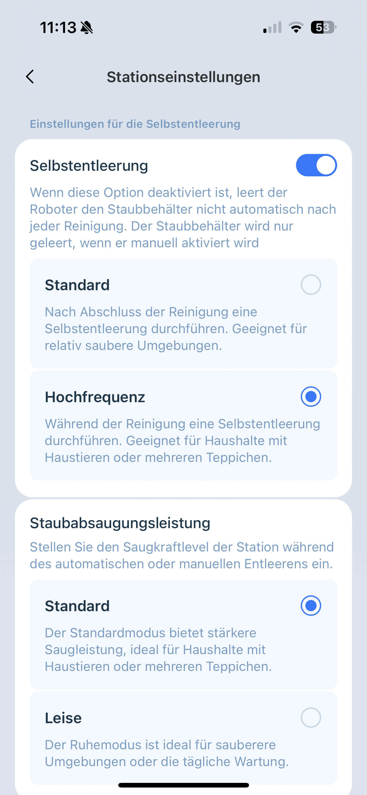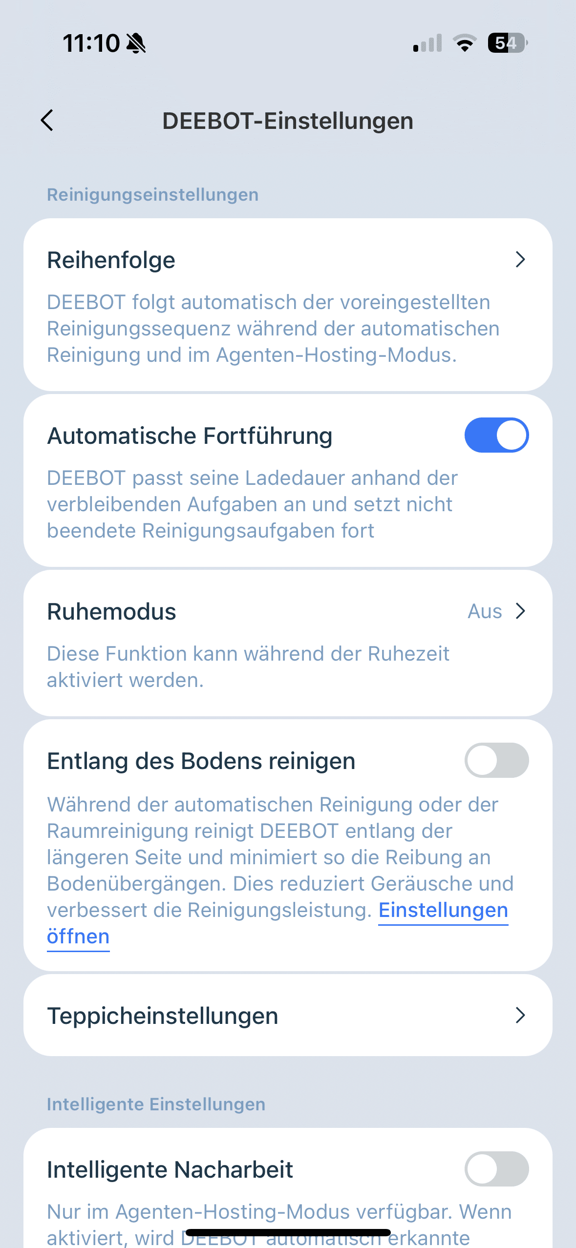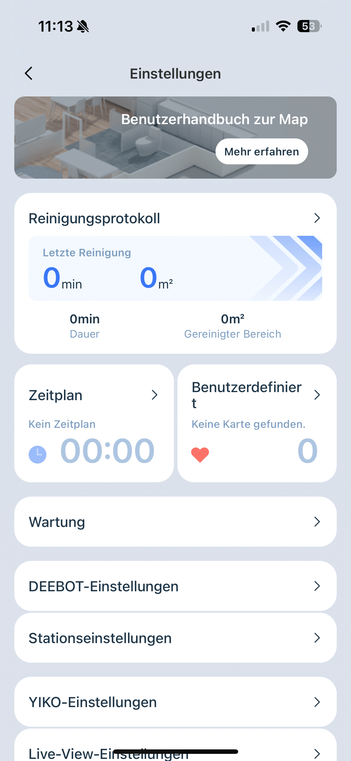Die App selbst erfindet das Rad nicht neu und bietet bekannte Einstellungsmöglichkeiten. So könnt ihr hier Anpassungen an der Karte vornehmen oder Details zur Reinigung festlegen. Praktisch ist auch die Erstellung eines Reinigungsplans. Hier könnt ihr bestimmen, zu welchen Tagen und Zeiten der Robo seine Reinigungstour abhalten soll. Das erspart euch das manuelle Starten des Saugers und sorgt dafür, dass er eure Wohnung reinigt, wenn ihr gerade unterwegs seid.