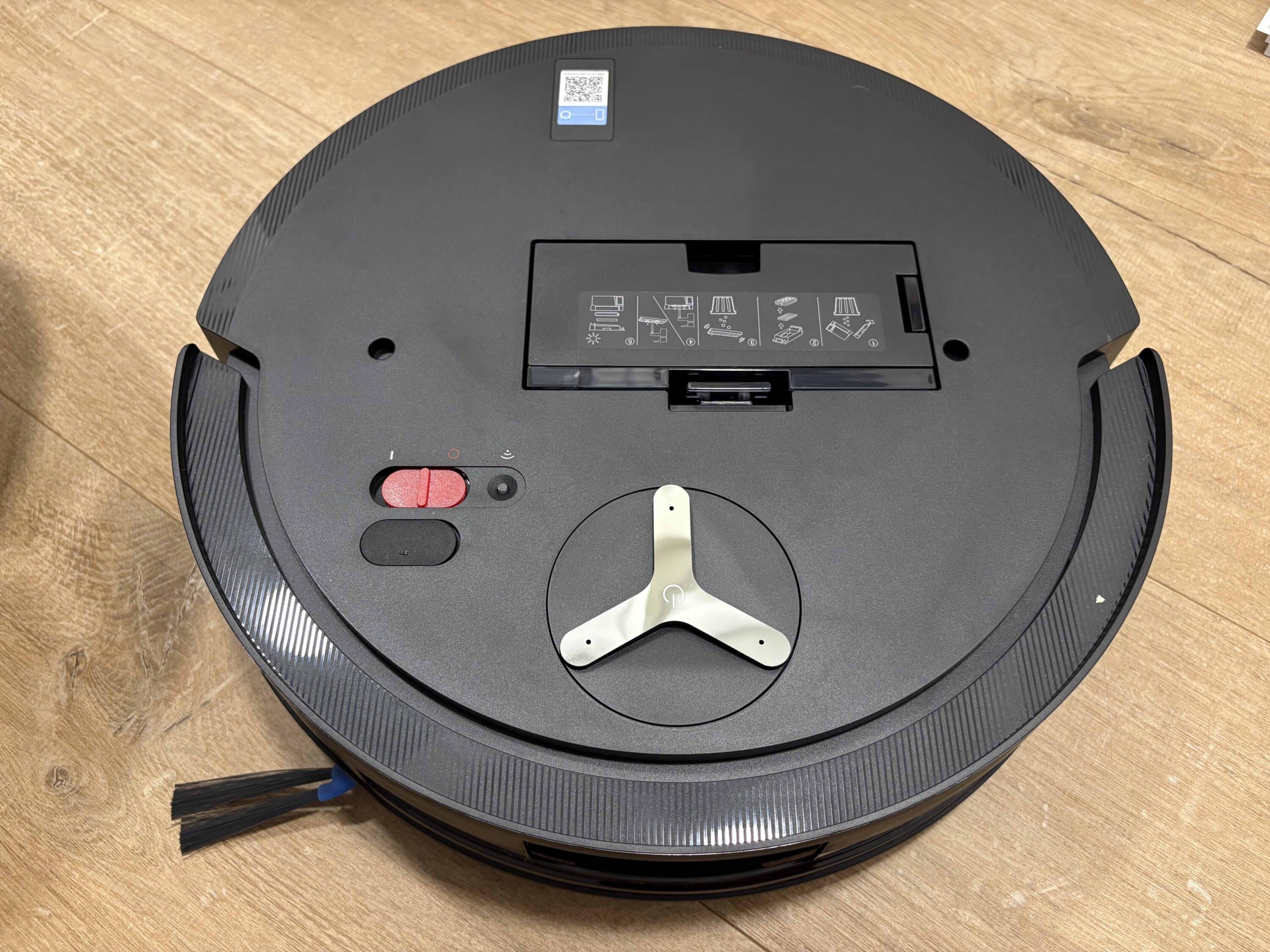 ECOVACS sieht in dieser Technologie offenbar die Zukunft im Premiumsegment der Saugroboter. Schließlich kam bereits beim ECOVACS DEEBOT X9 Pro Omni (Test | € 1.099,00 *) eine solche zum Einsatz. Weiterhin finden wir auf der Unterseite Hauptbürste, Seitenbürste und zwei gut profilierte Räder.