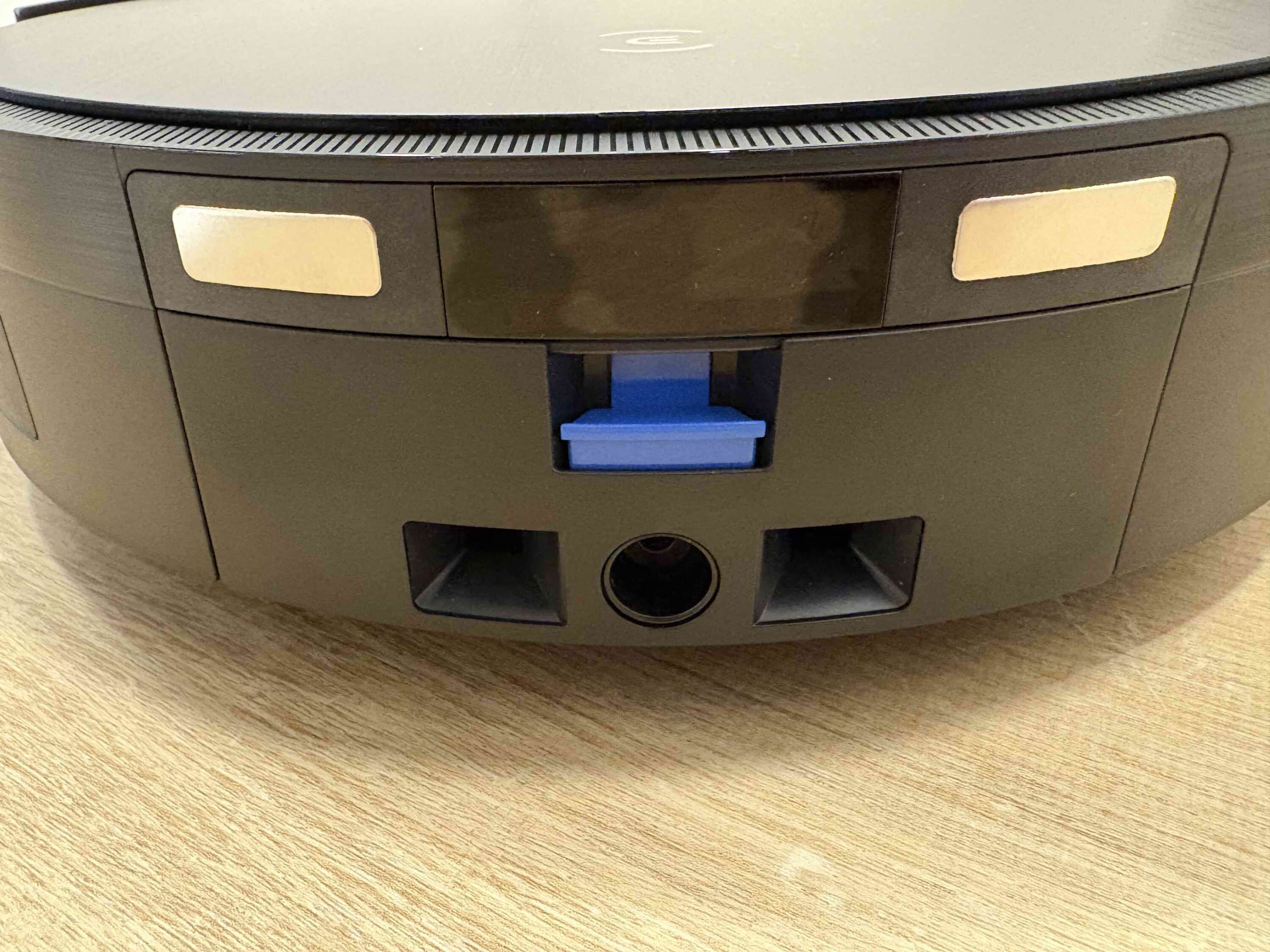 Der Saugroboter selbst erfindet dabei das Rad nicht neu und setzt auf das bewährte kreisförmige Design. Neben Firmenlogo finden wir auf der Oberseite noch eine kleine Bedieneinheit nebst Mikrofonen für die Nutzung von Sprachassistenten. Der magnetisch befestigte Deckel lässt sich abnehmen und kann als eine Art Wartungsklappe verstanden werden. Einen LiDAR-Turm gibt es indes nicht.