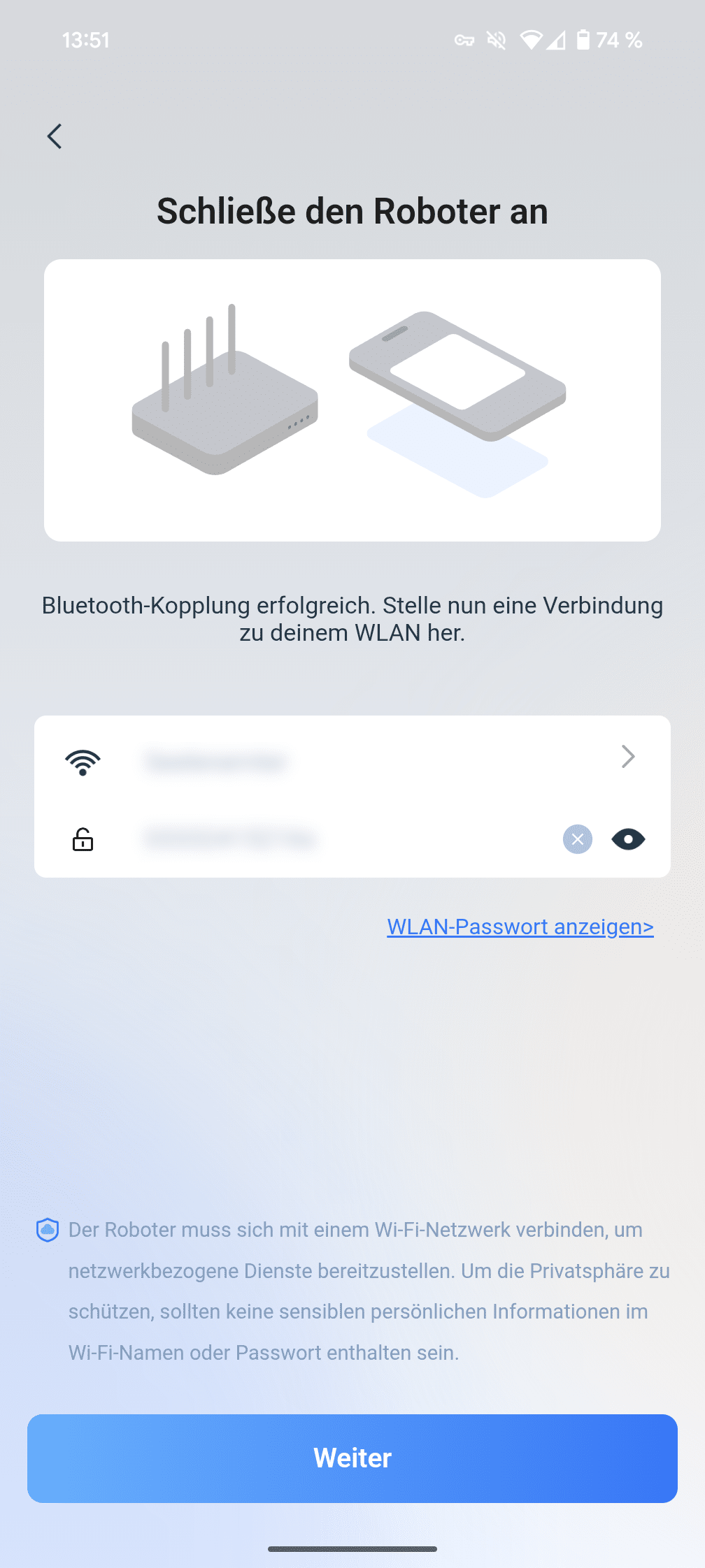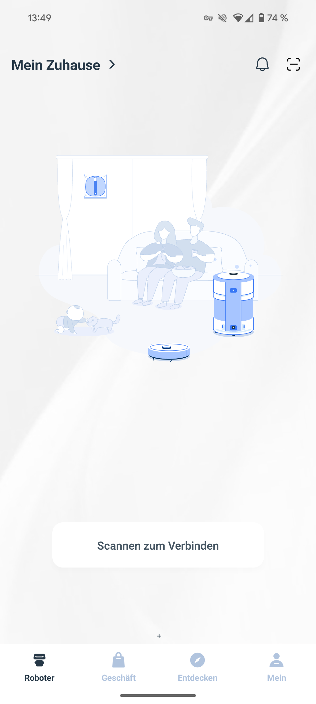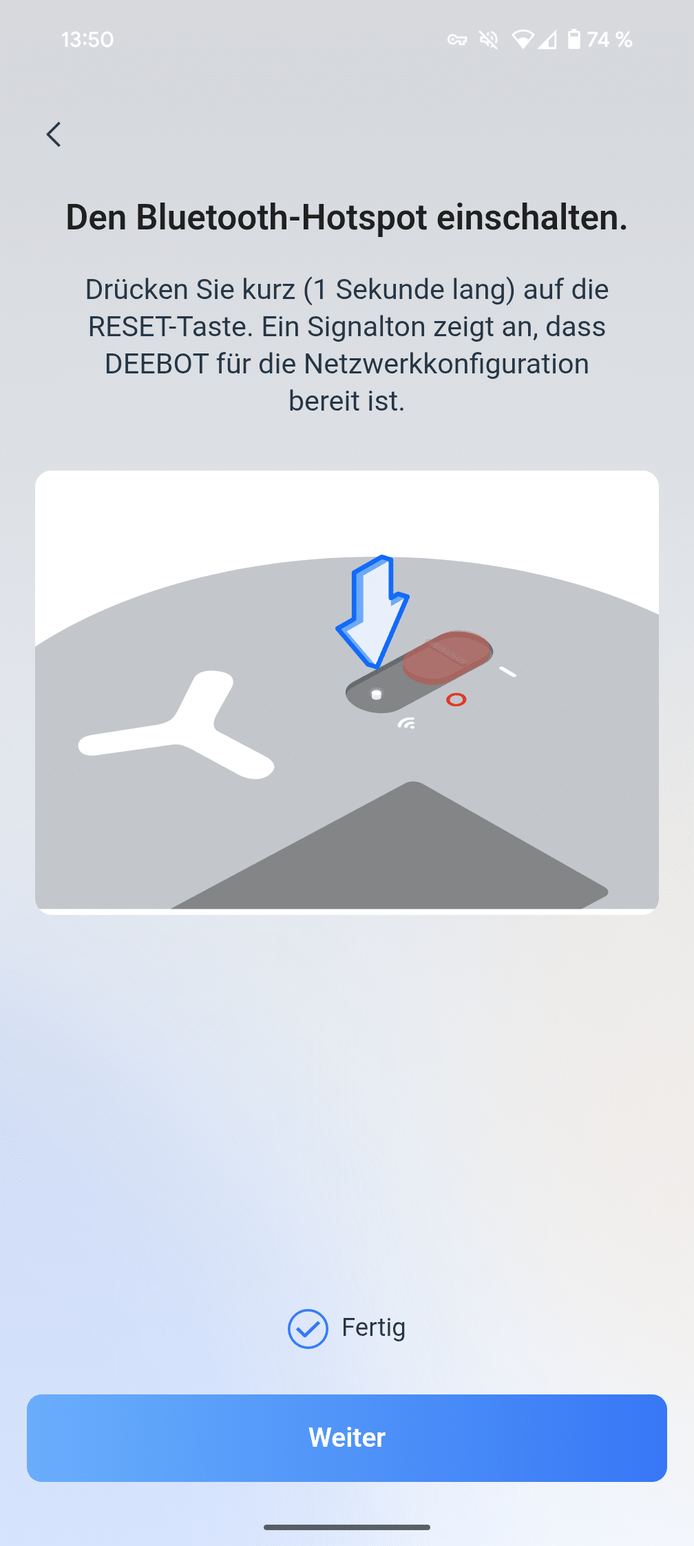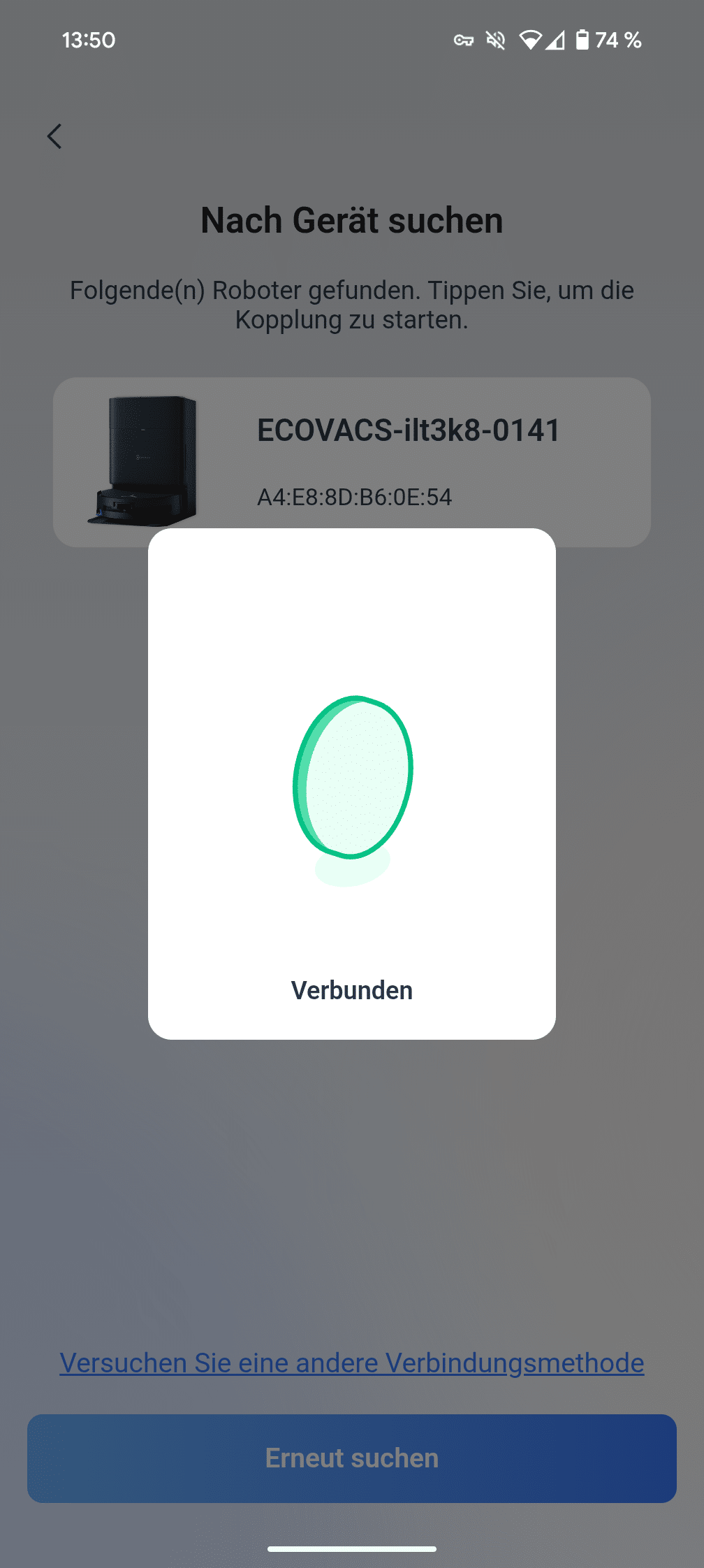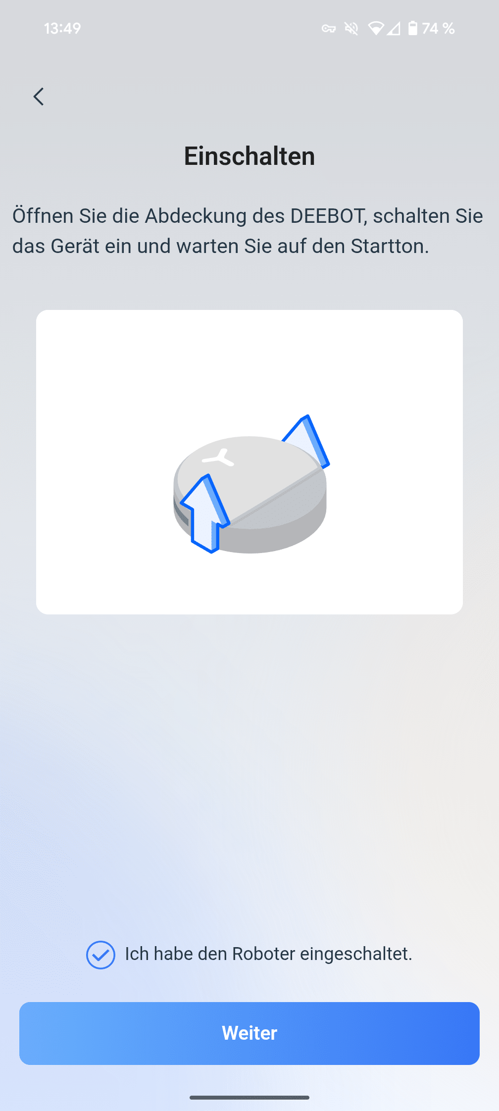 Die Inbetriebnahme verläuft erfreulich unkompliziert. Nach dem Download der Ecovacs Home App über den QR-Code im Quick Start Guide führt die Anwendung Schritt für Schritt durch die Einrichtung. Unter der Abdeckung des Roboters – nicht der Station – findet sich ein weiterer QR-Code, mit dem sich das Gerät hinzufügen lässt.