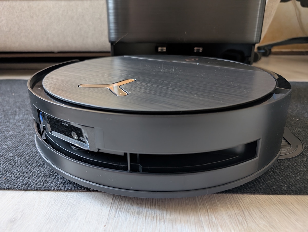Die flache Bauweise des Roboters mit nur 9,8 cm Höhe zahlt sich jedoch aus. Während andere Saugroboter mit ihren LiDAR-Türmen oft an niedrigen Möbeln scheitern, schlüpft der X9 Pro Omni problemlos darunter. Das erschließt Reinigungsbereiche, die andere Roboter nicht erreichen.