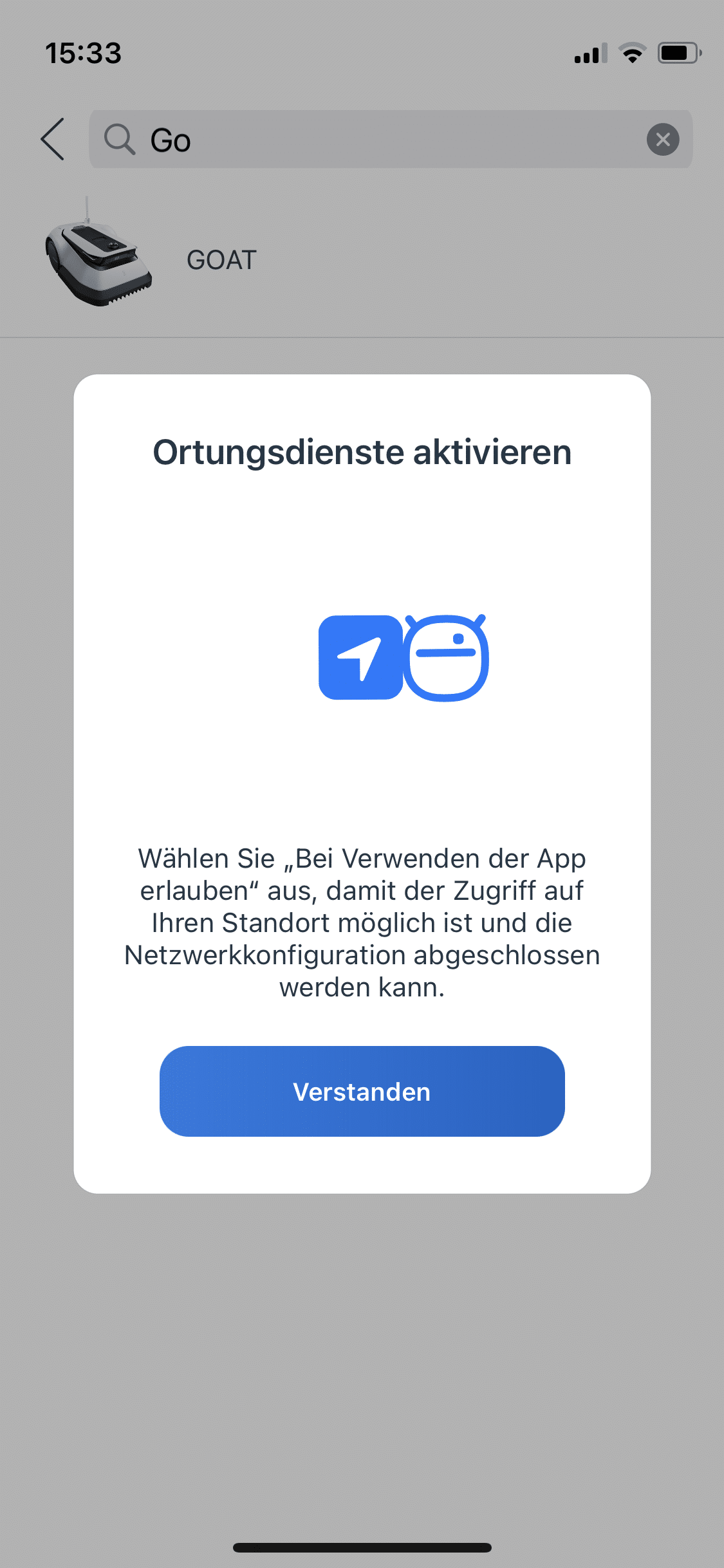 Im nächsten Schritt fährst du den Goat G1 wie ein ferngesteuertes Auto durch deinen Garten. Dabei speichert der Roboter die unsichtbaren Grenzen ab. Je nach Rasenfläche kann das durchaus viel Zeit in Anspruch nehmen.