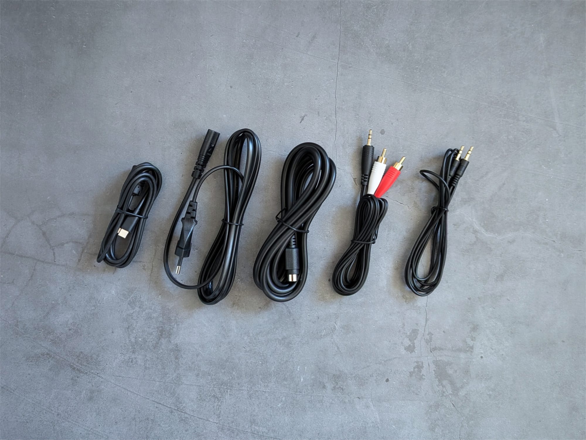 - ein USB-C-Kabel, ein 3,5-mm-Klinkenkabel, ein 3,5-mm-Klinke-auf-Cinch-Kabel und zwei Lautsprecherständer sind ebenfalls enthalten