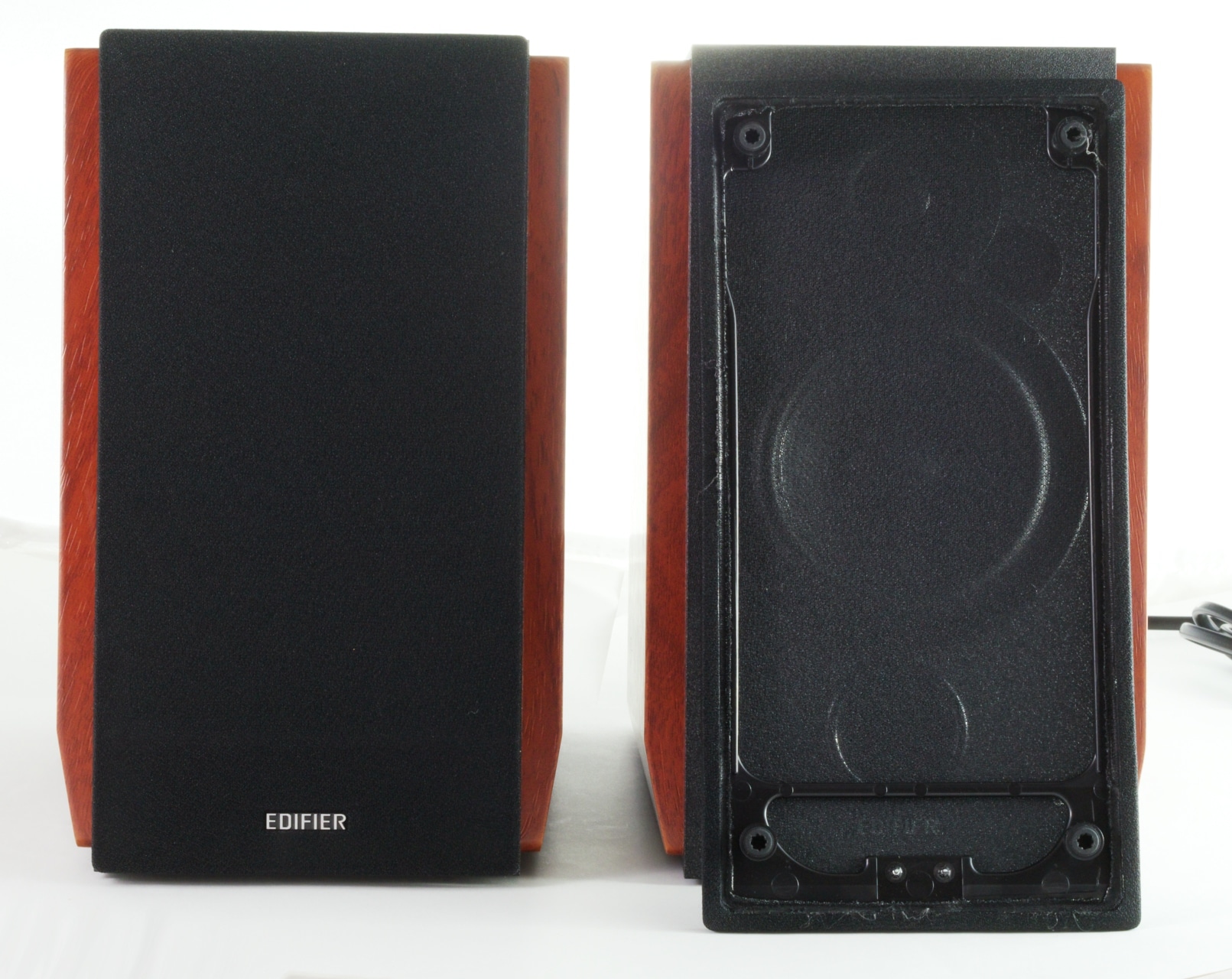 Abseits der getrennten Materialwahl ist der Aufbau der Lautsprecher wie üblich. Bei beiden Lautsprechern befinden sich die Chassis sowie das Bassreflexrohr an der Vorderseite, wo sie normalerweise hinter einem bespannen Rahmen versteckt sind. Dieser lässt sich mit Leichtigkeit abnehmen. Wer möchte kann die R1700BT also auch „offen“ betreiben.